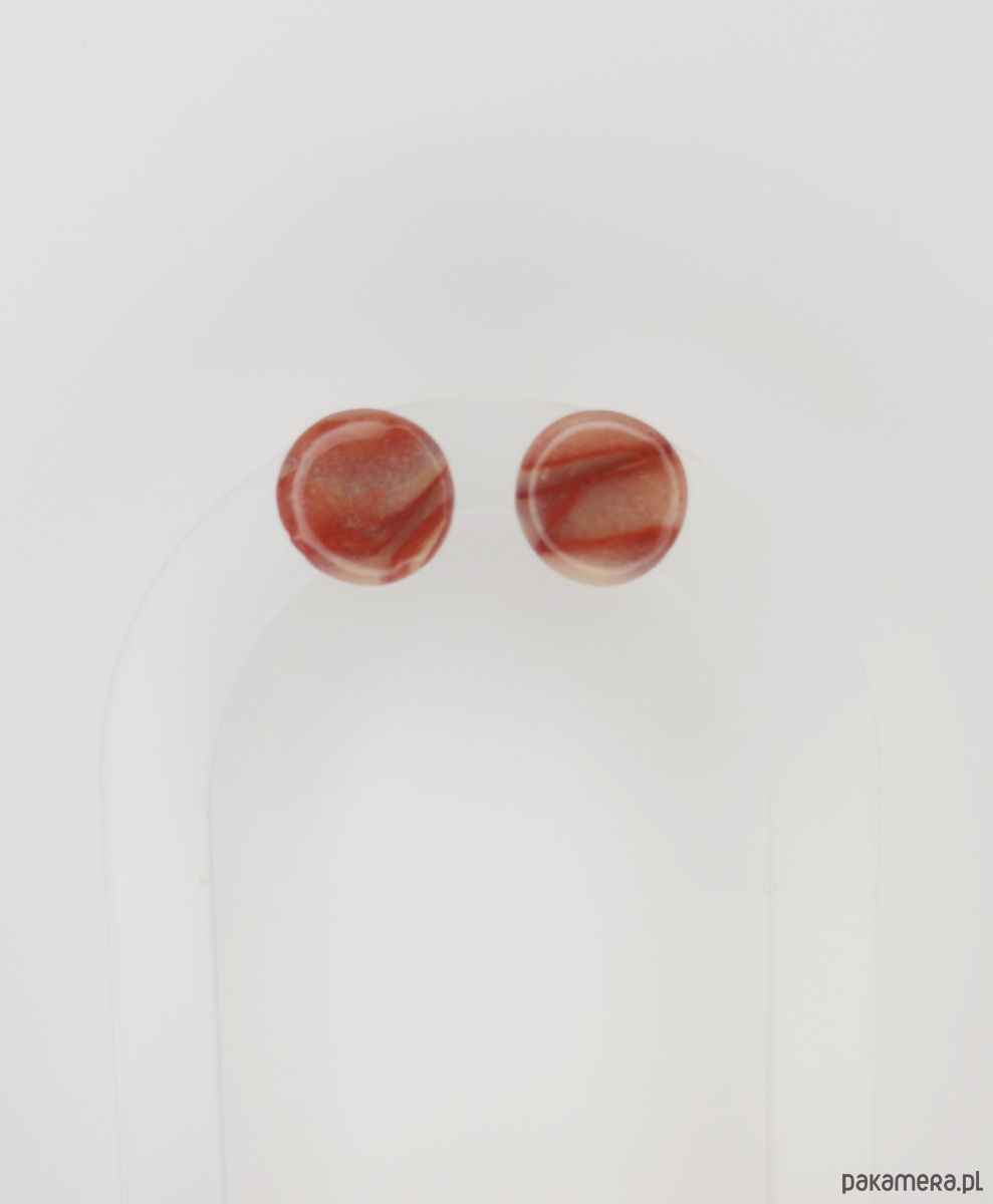 Odkryj unikalne kolczyki stworzone w mojej pracowni Freska Handmade. Każda para to połączenie niepowtarzalnego wzoru i starannie dobranych odcieni czerwieni, które tworzą efekt kamienia naturalnego szlifowanego na kształt koła.