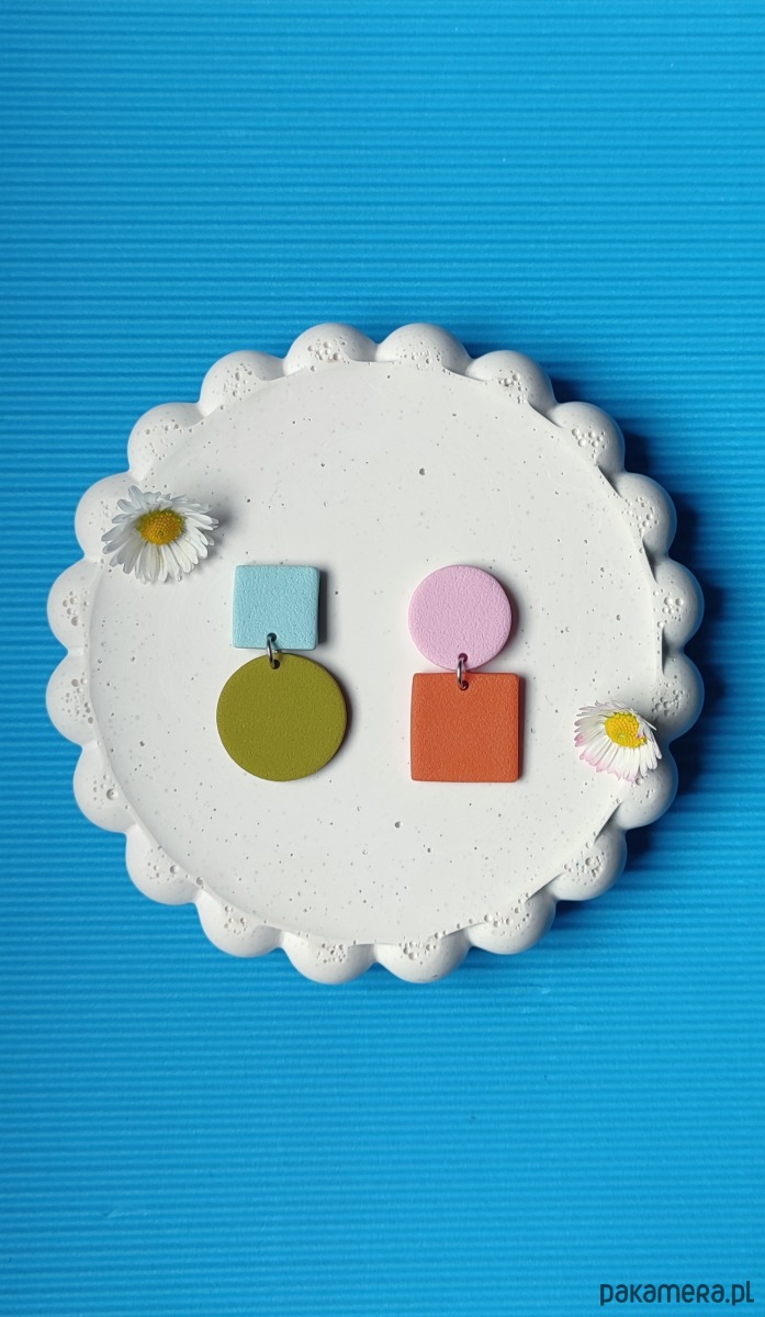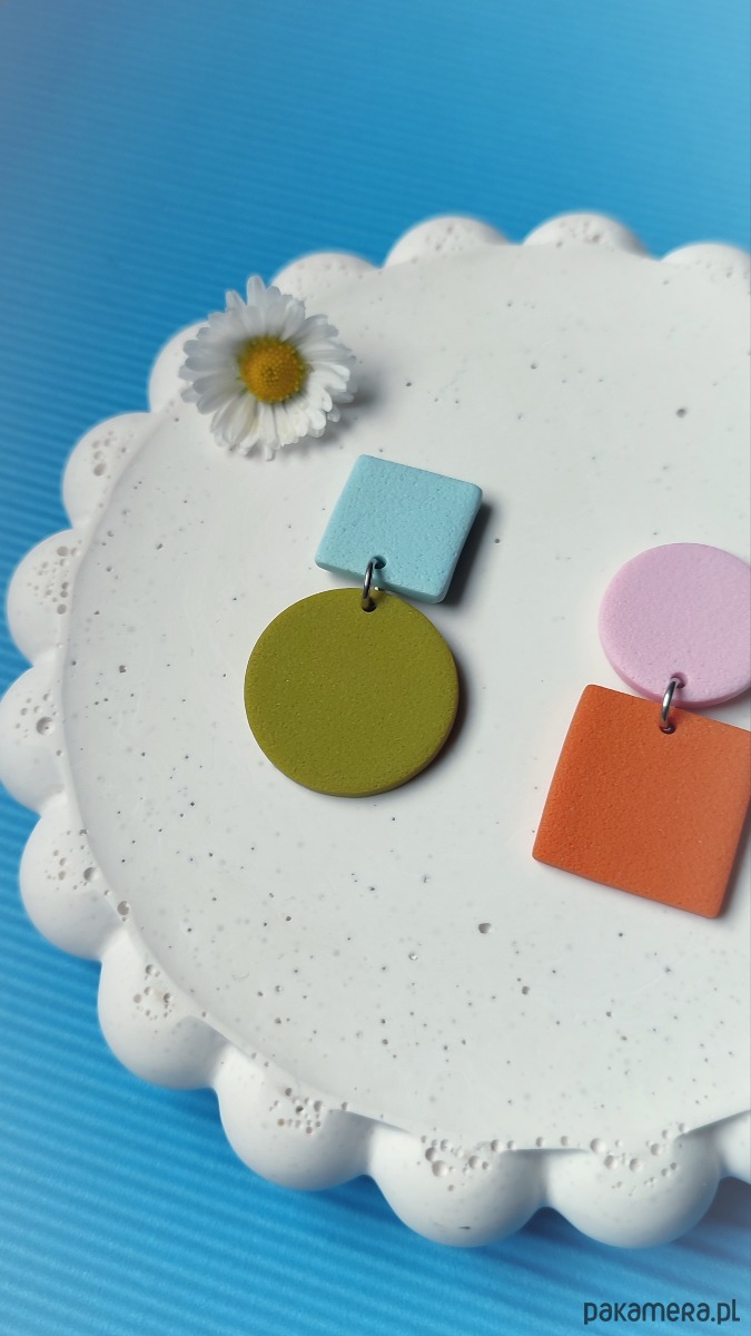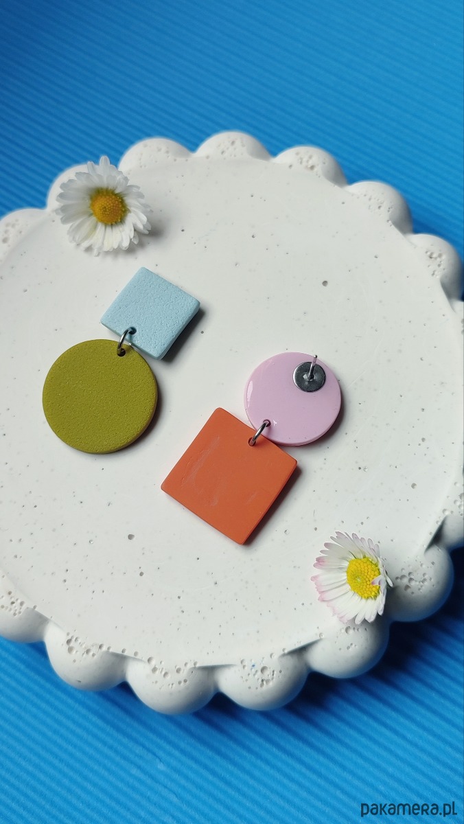 Kolczyki GEOMETRIC to AŻ 4! piękne kolory! Prostota w formie geometrycznej. Ale żeby nie było nudne to łącze tutaj i koła i kwadraty!
