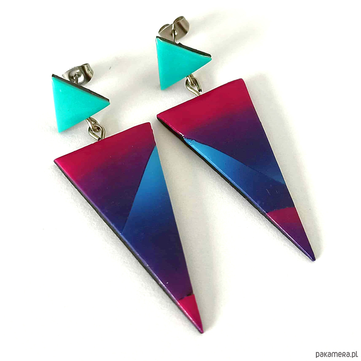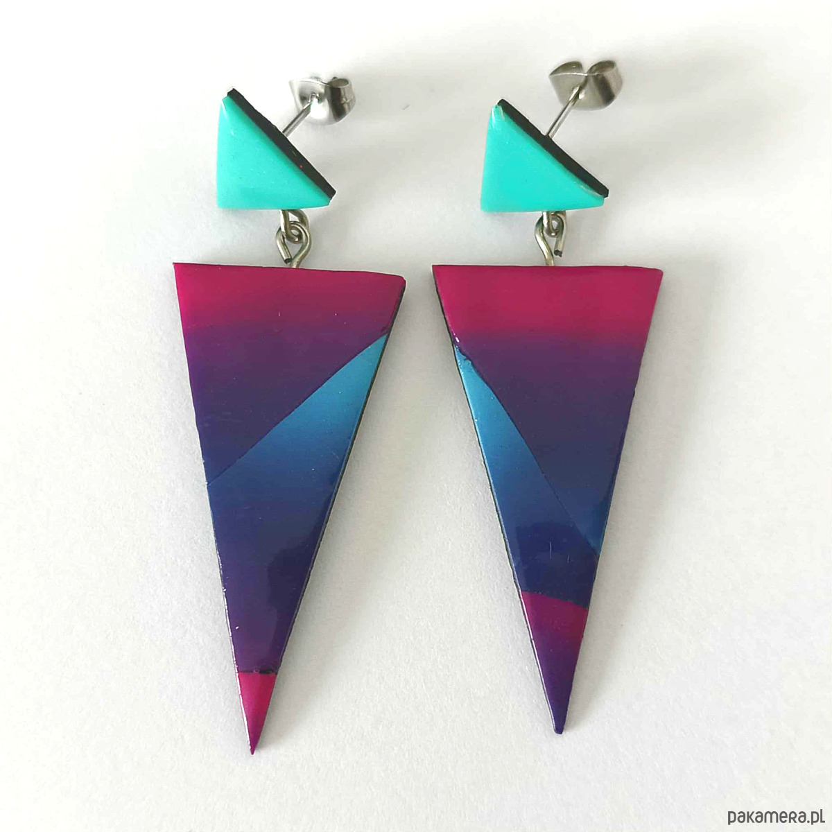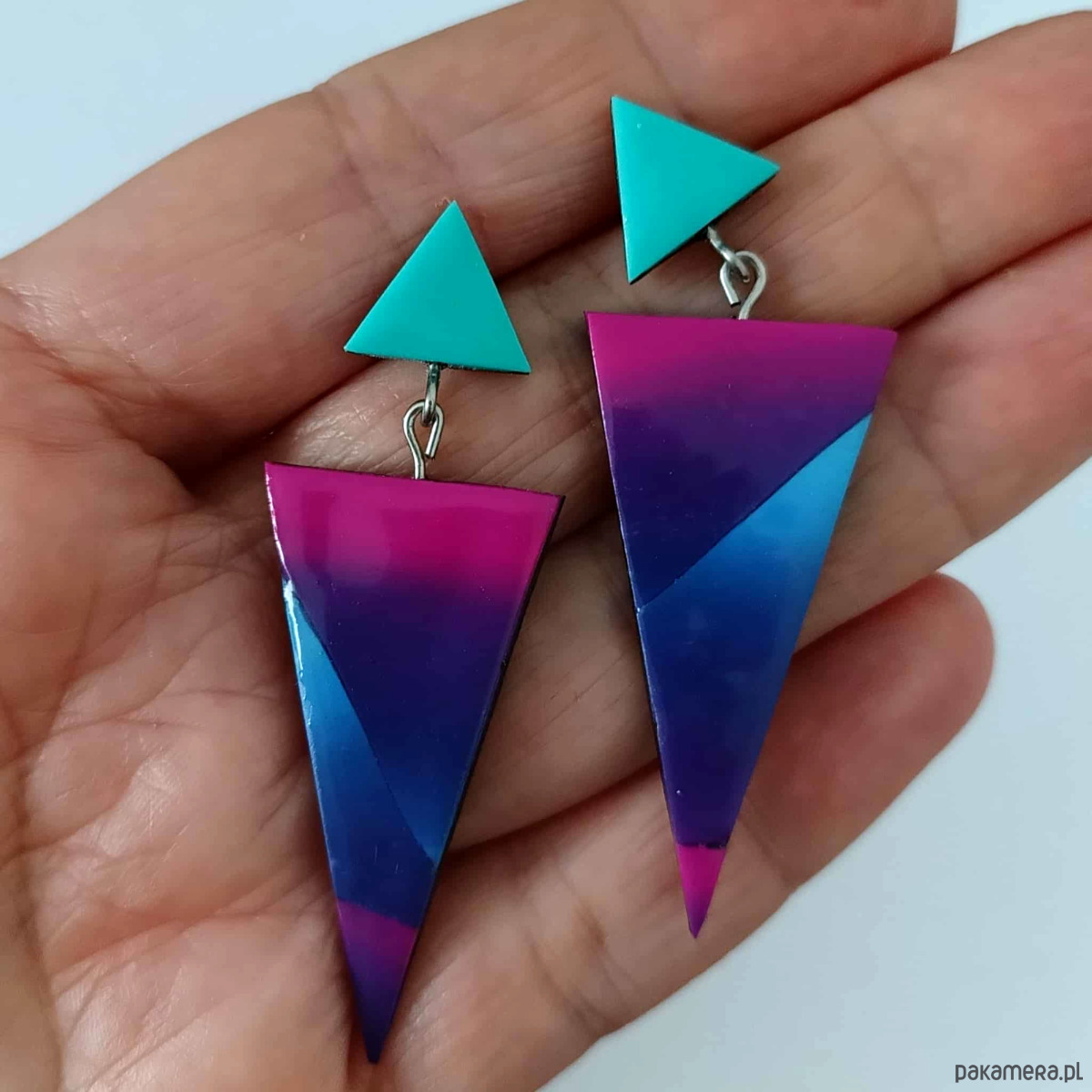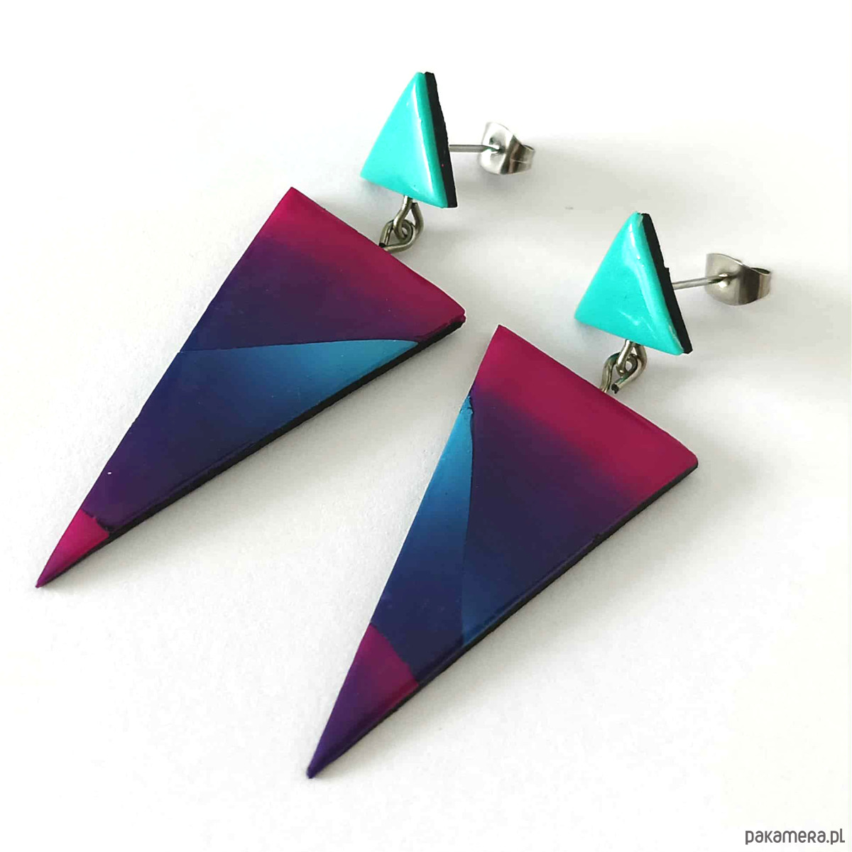 Kolczyki Geometryczne Fioletowe Trójkąty