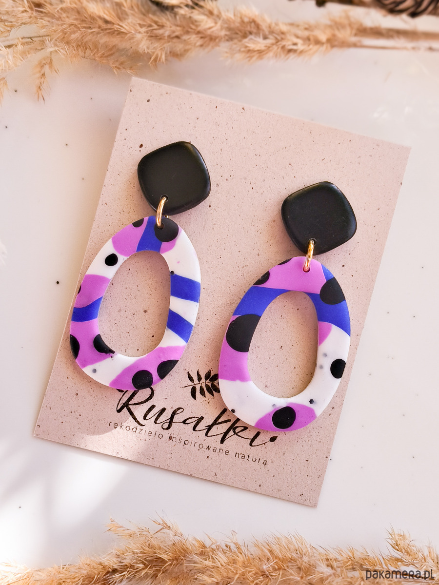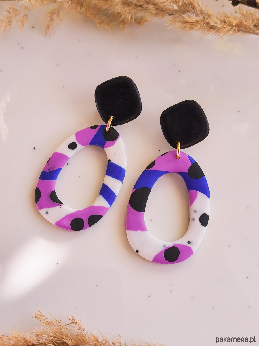 Artystyczne kolczyki z abstrakcyjnym wzorem to biżuteria inspirowana malarstwem i nowoczesnym designem. Połączenie fioletu i kobaltu z kontrastowymi białymi oraz czarnymi ciapkami nadaje im wyrazisty, a jednocześnie elegancki charakter. To wyjątkowy dodatek dla osób, które lubią kolorową biżuterię z artystyczną duszą i chcą podkreślić swój indywidualny styl. Kolczyki wykonane są z leciutkiej gliny polimerowej, a metalowe elementy są wykonane ze stali chirurgicznej. Stal chirurgiczna jest tworzywem, które mogą nosić nawet alergicy i który nie zmienia koloru pod wpływem wody.