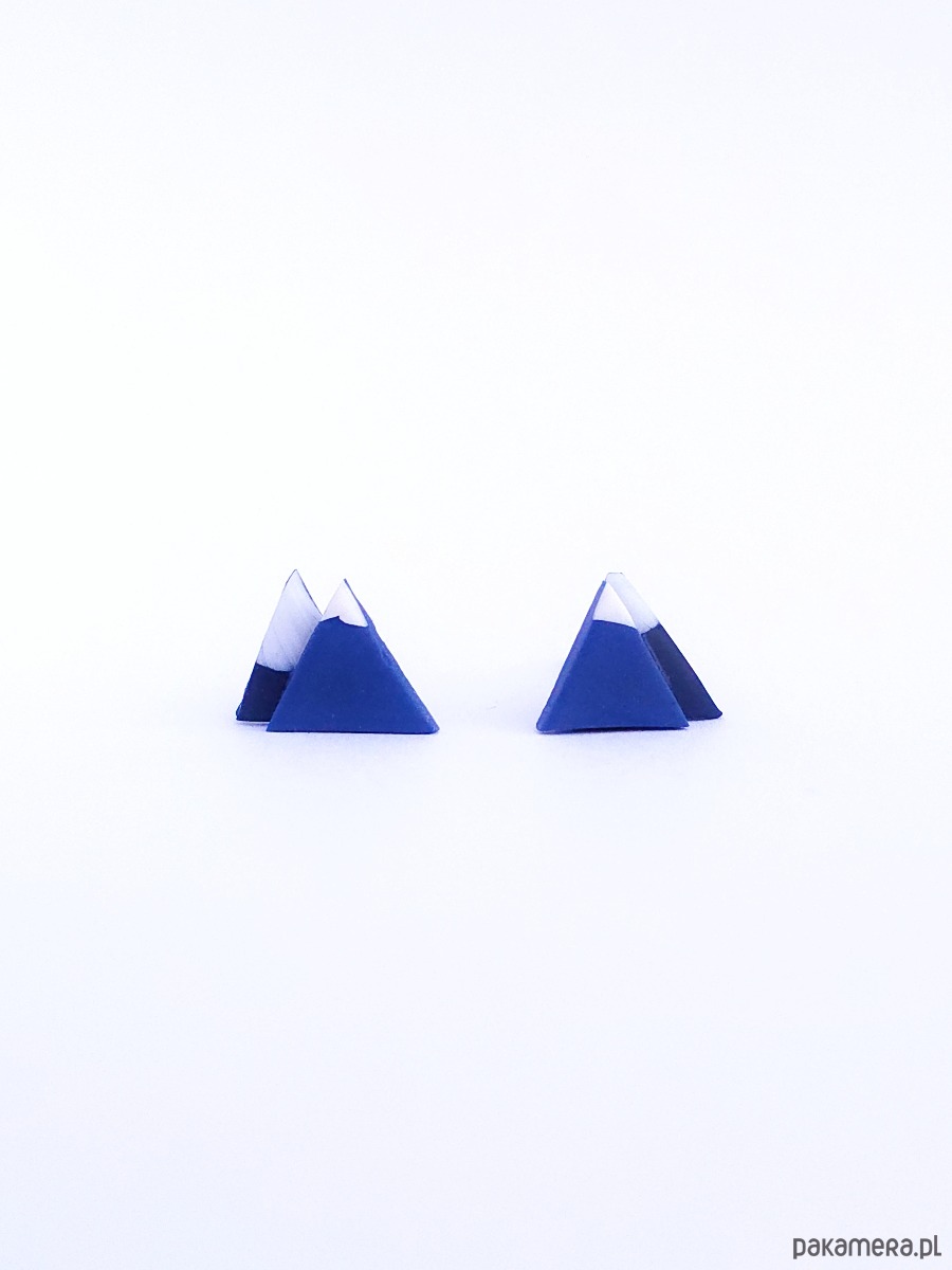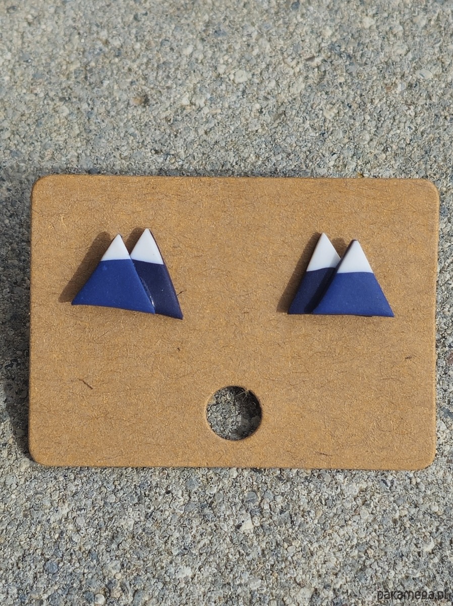 Leciutkie kolczyki z glinki polimerowej, sztyfty i zatyczki ze stali chirurgicznej.