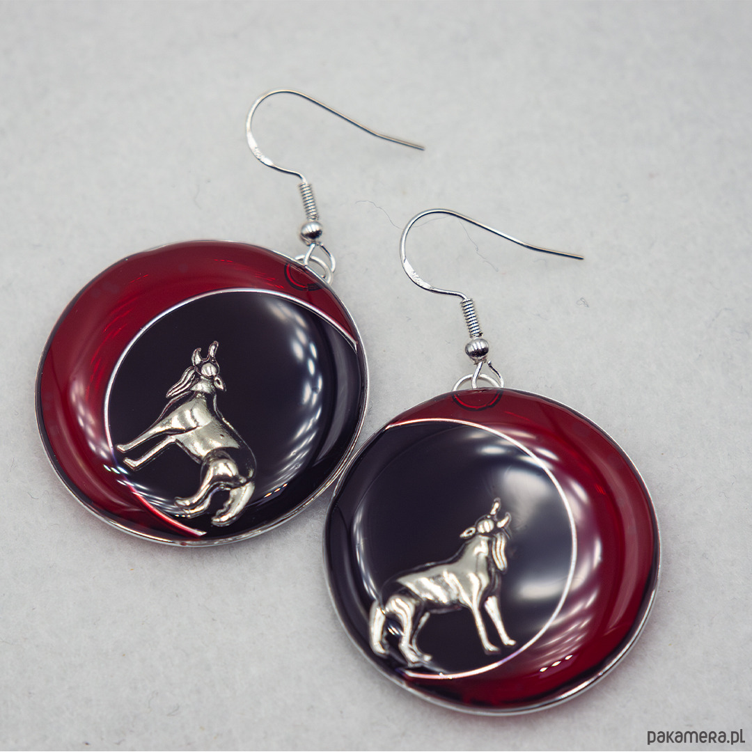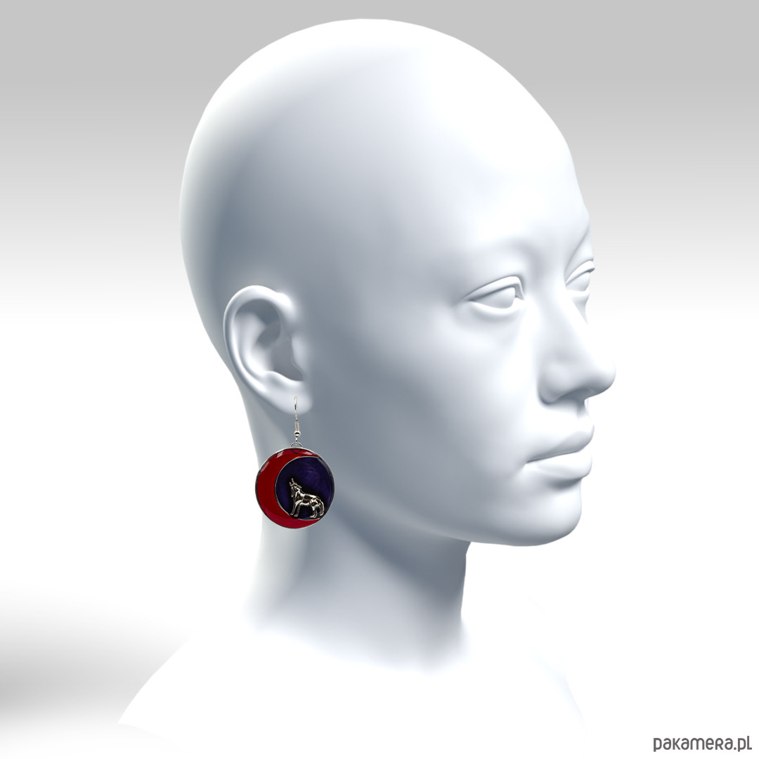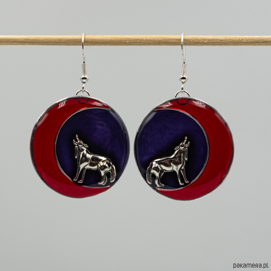 Kolczyki gotyckie z żywicy z wilkiem i półksiężycem 061