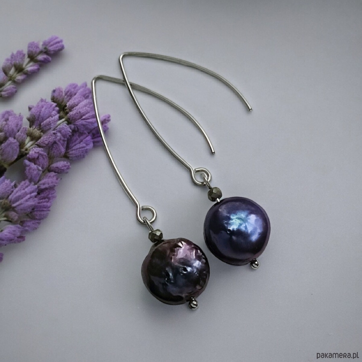 Kolczyki : granatowe perły słodkowodne