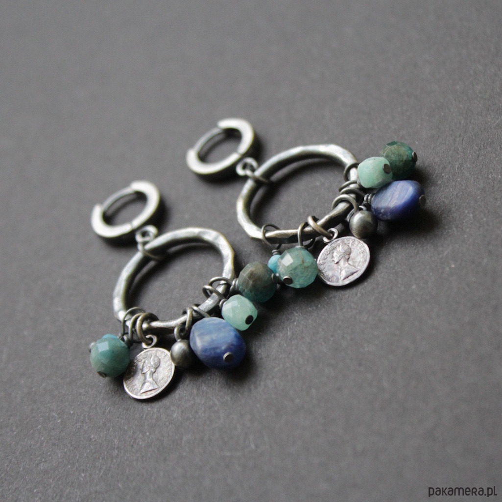 Kolczyki zostały ozdobione srebrnymi monetami wielkości 0,8 cm.