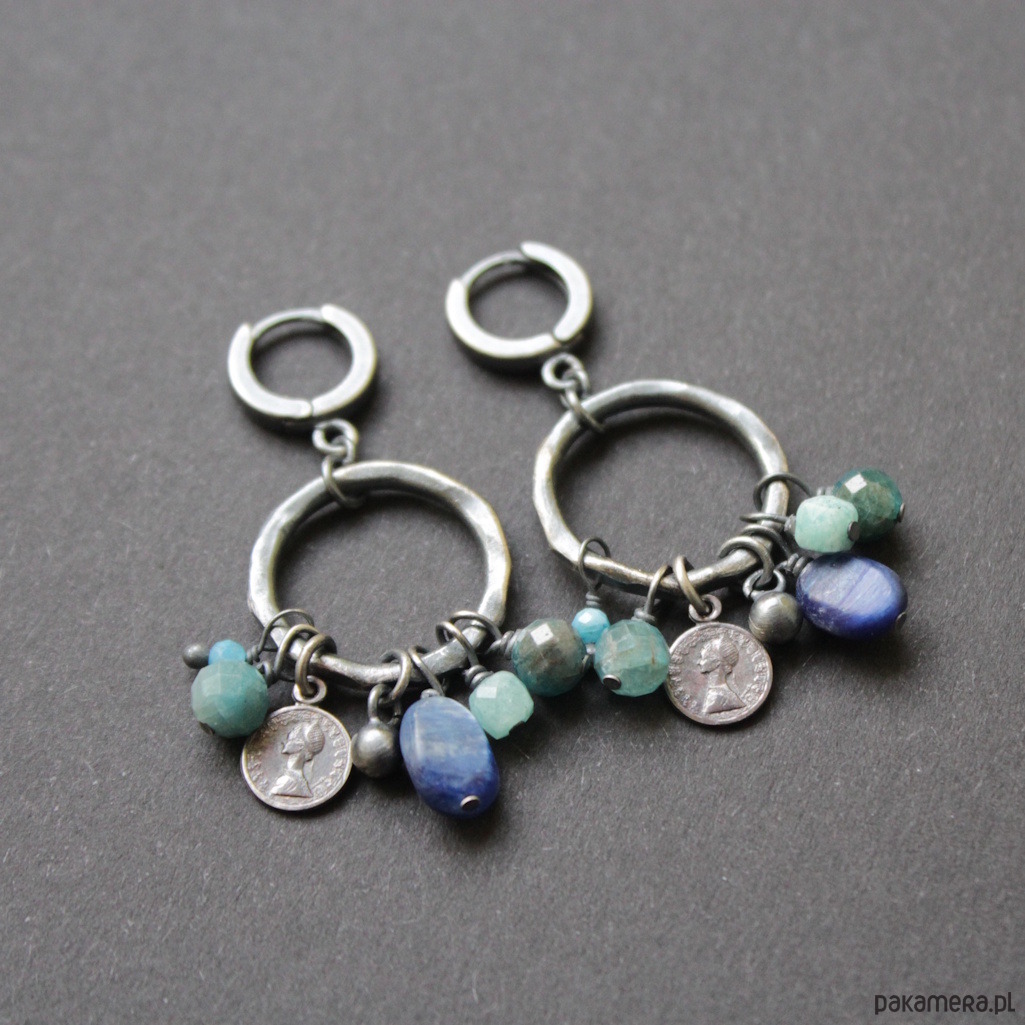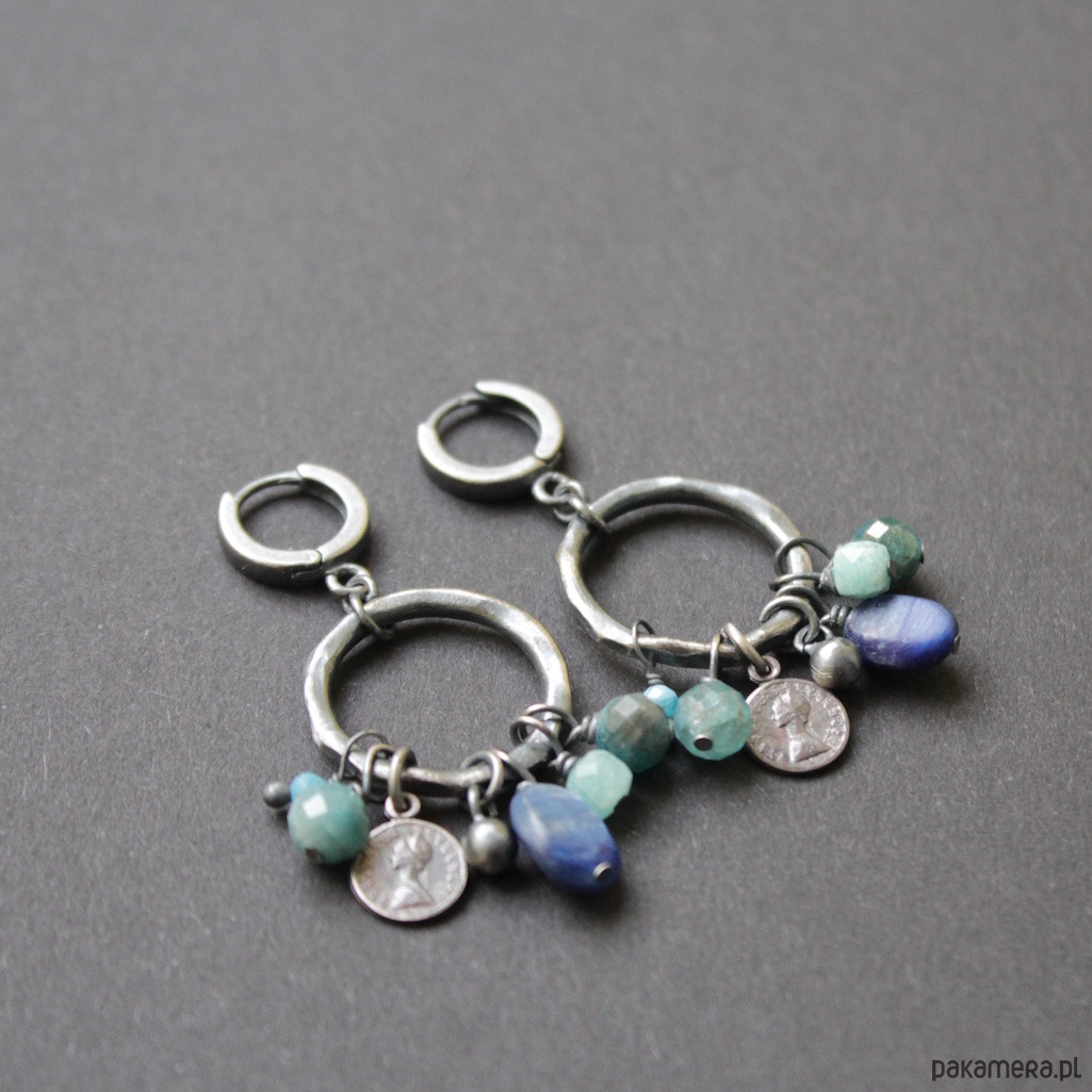Kolczyki zostały ozdobione srebrnymi monetami wielkości 0,8 cm.