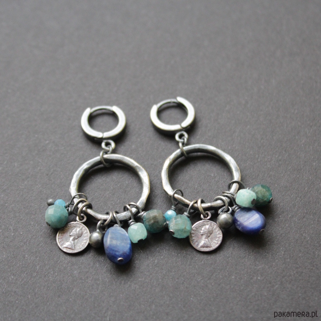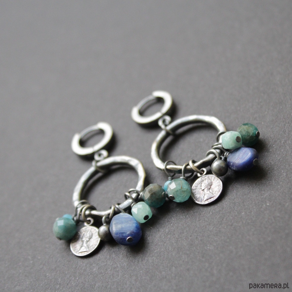 Kolczyki zostały ozdobione srebrnymi monetami wielkości 0,8 cm.