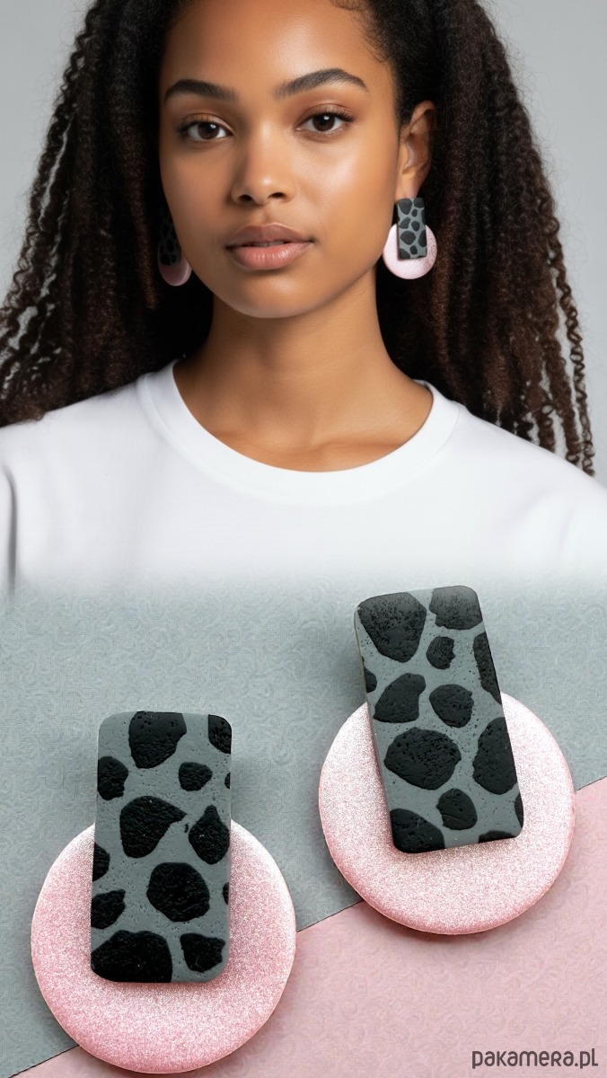 Oryginalne kolczyki wykonane ręcznie z dbałością o szczegóły z profesjonalnej glinki polimerowej, wypalane w piecu i szlifowane w domowej pracowni. Każda para kolczyków jest niepowtarzalna i wyjątkowa. Kolczyki są bardzo lekkie i wygodne, nie obciążają płatka ucha i przyciągają spojrzenia. Zapinane na sztyft ze stali chirurgicznej.