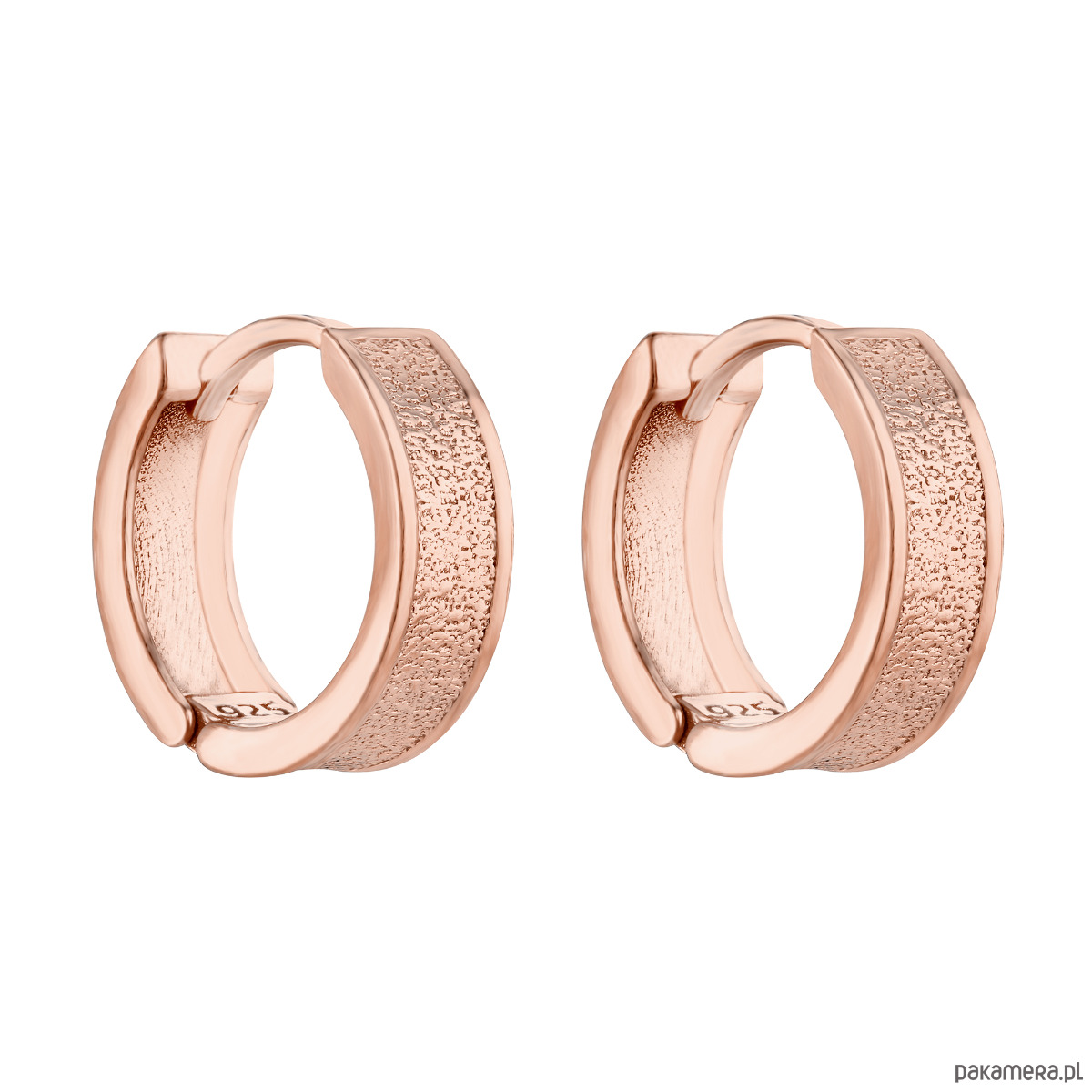 Złote grube kolczyki kółka z przepiękną fakturą. Całość wykonana ze srebra 925 powlekanego 18 karatowym różowym złotem.
