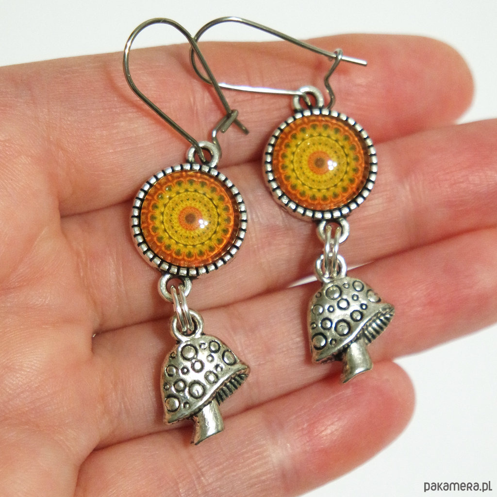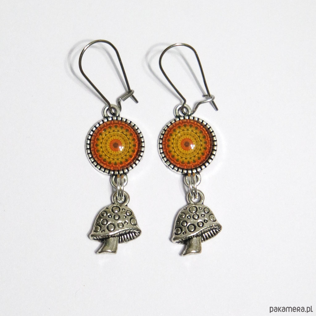 Kolczyki - Grzybki, mandala - wiszące