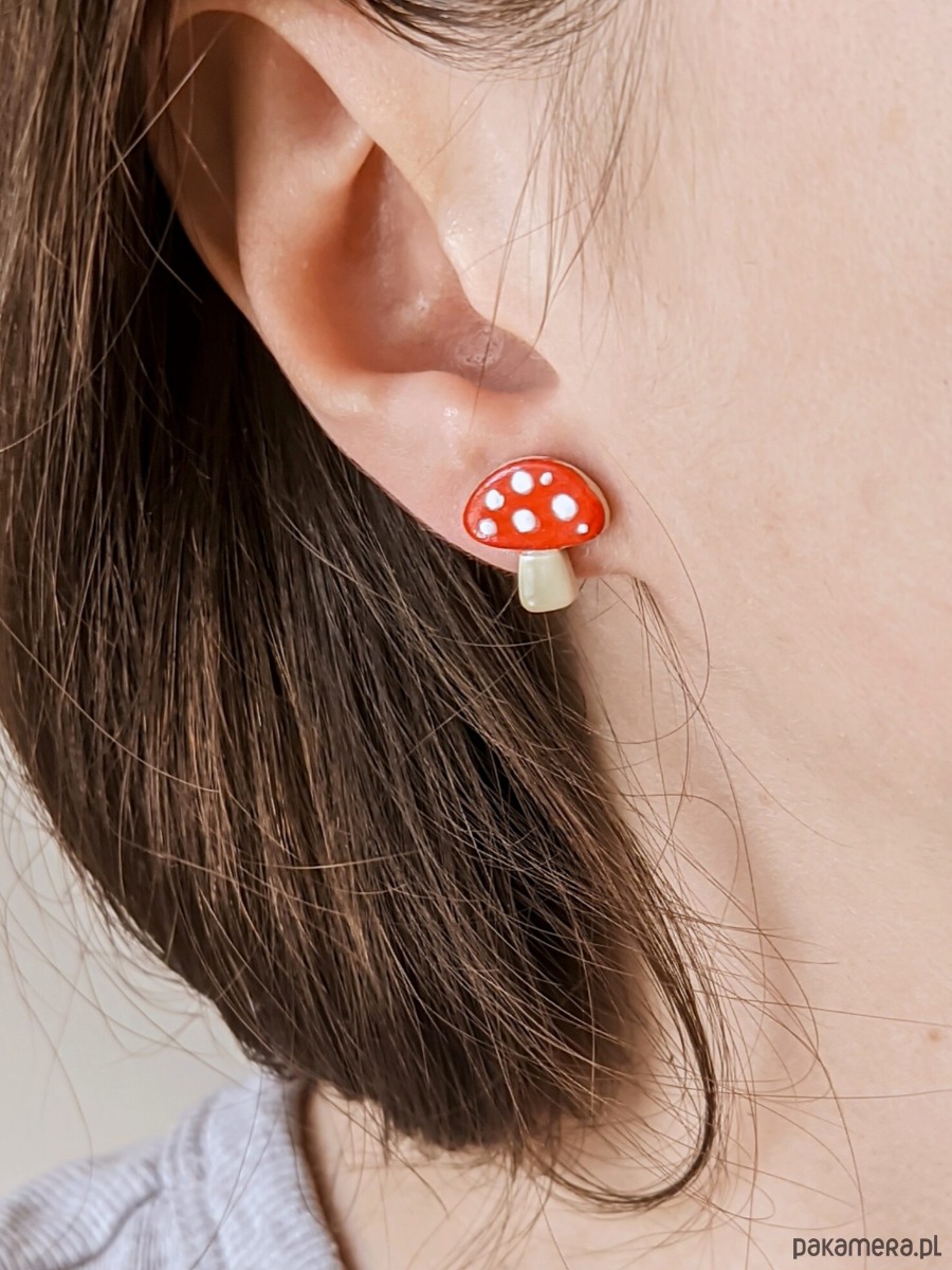 Kolczyki grzybki, muchomor, akcesoria z grzybkiem, biżuteria z muchomorem