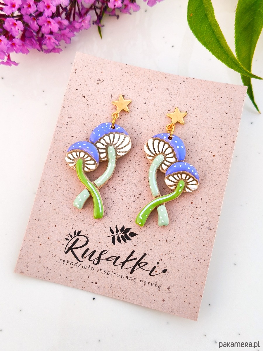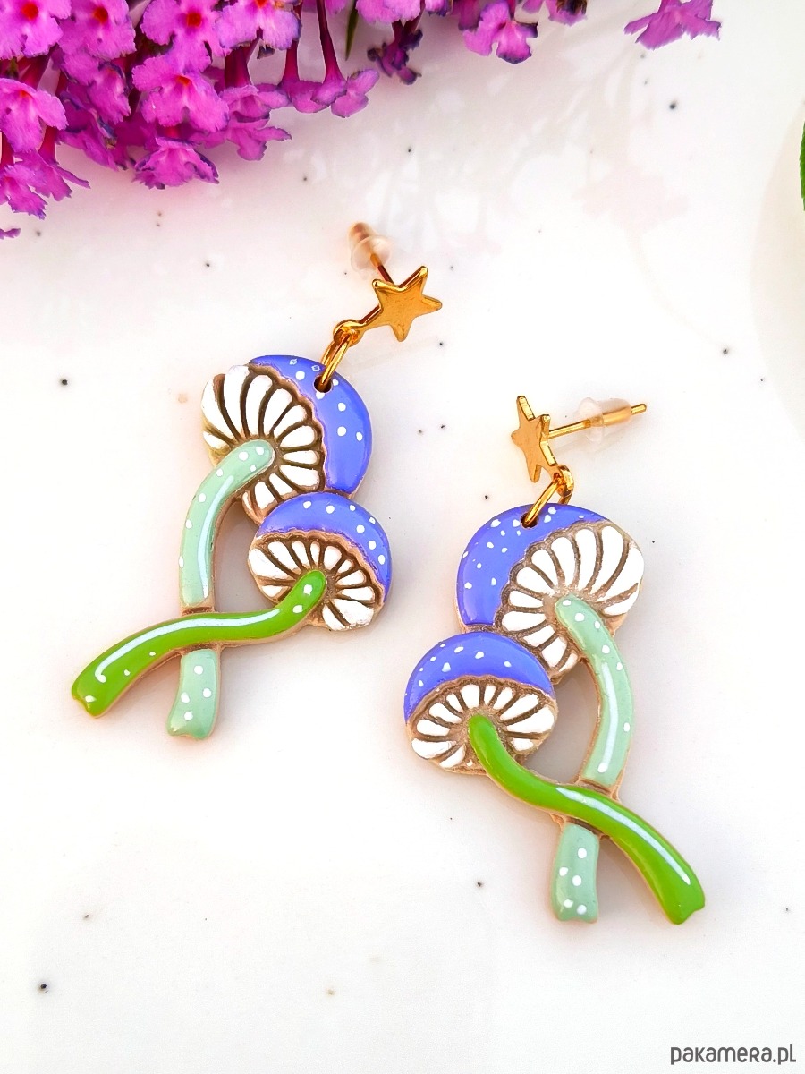 Kolczyki grzyby, kolorowe grzybki kolczyki w kształcie grzybów, fantasy, boho