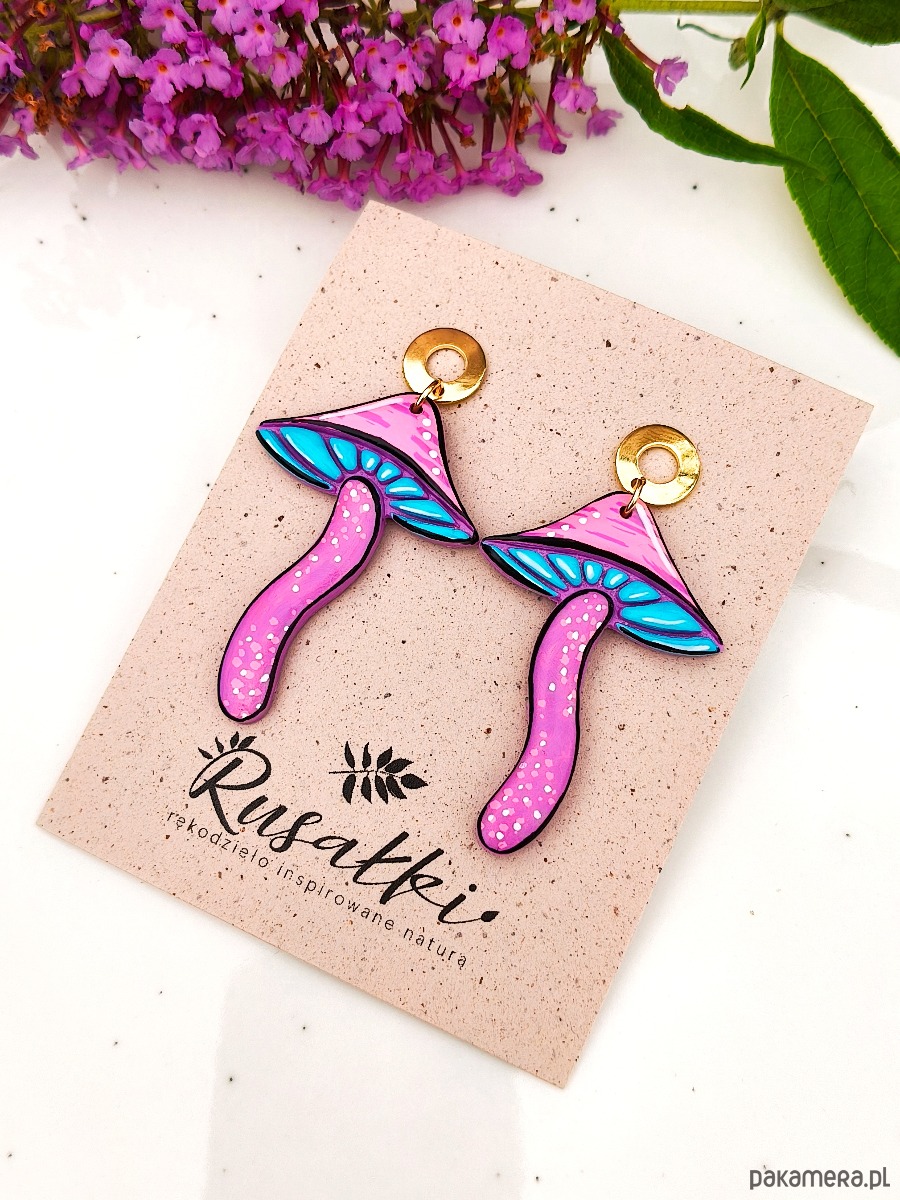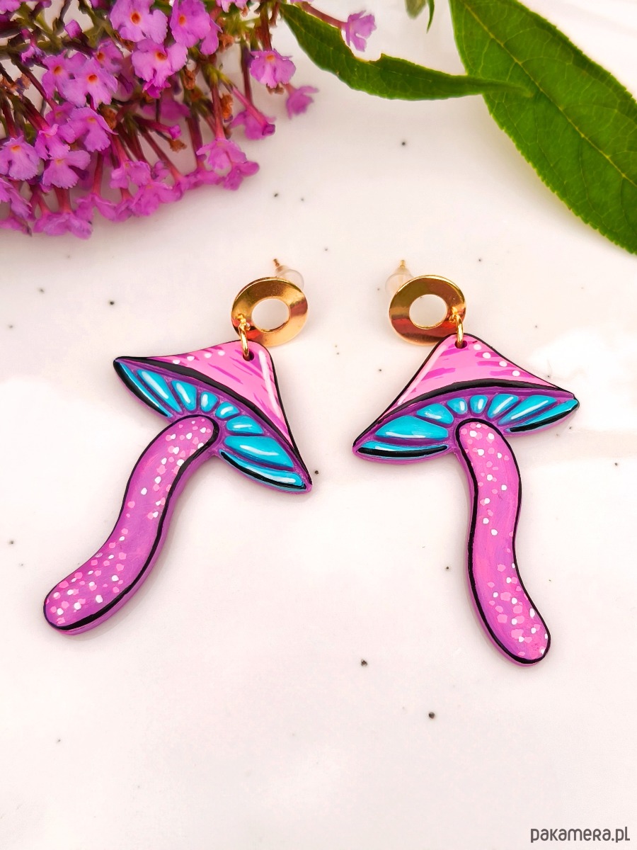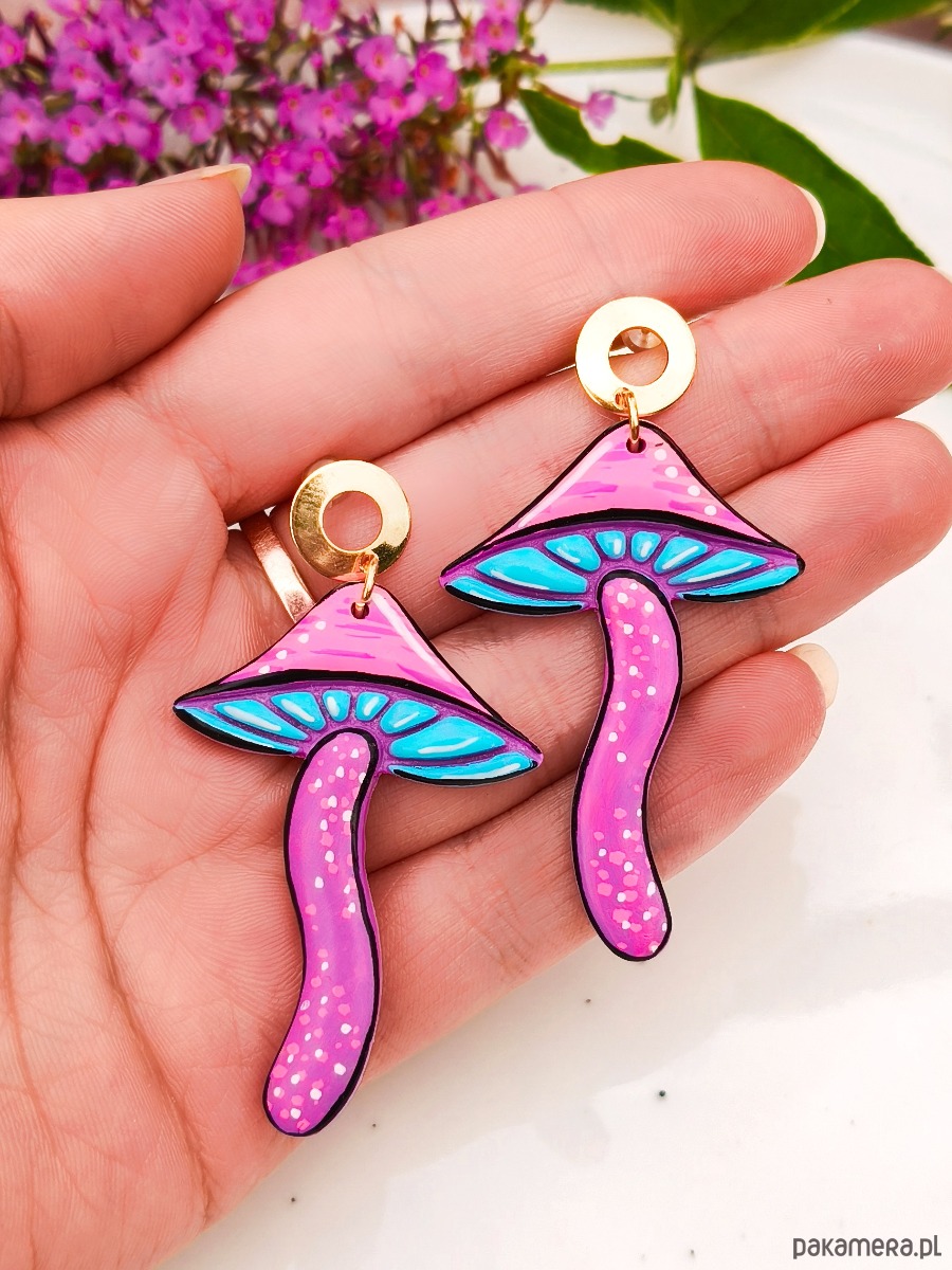 Kolczyki grzyby, magiczne grzyby duże lekkie kolczyki w kształcie grzybów