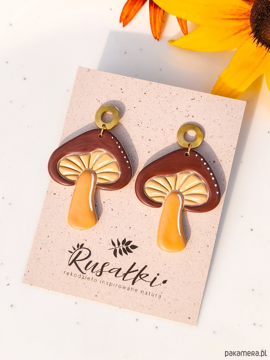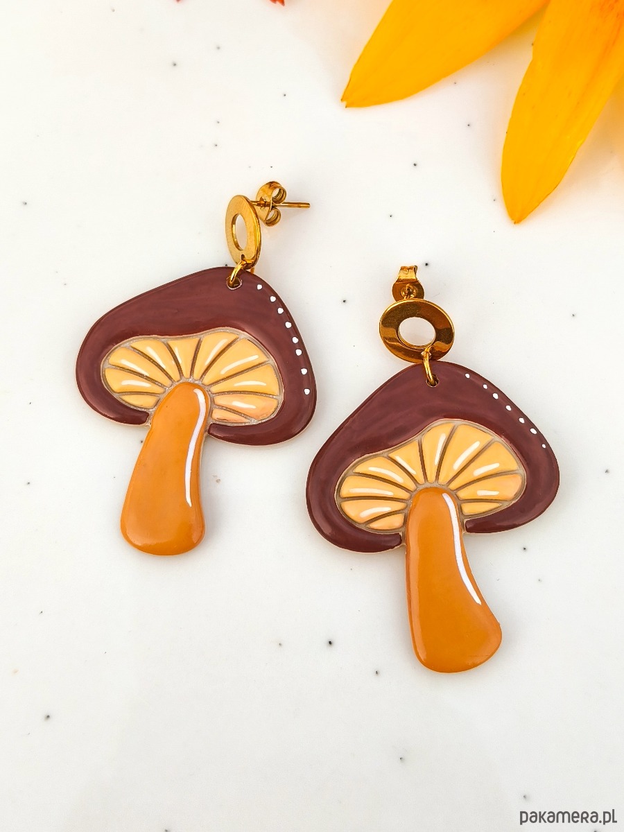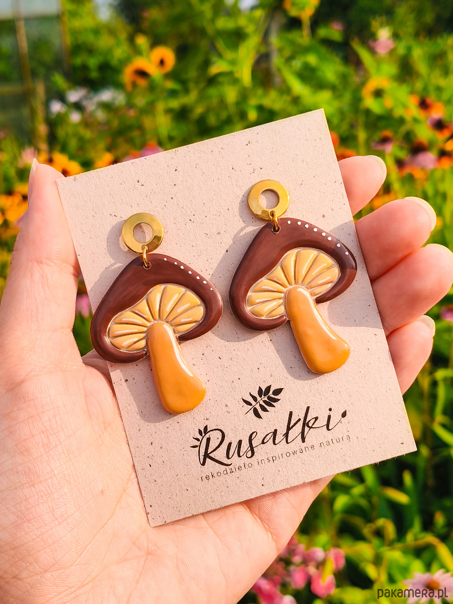 Kolczyki grzyby, podgrzybki, biżuteria w kształcie grzybów, prezent, boho