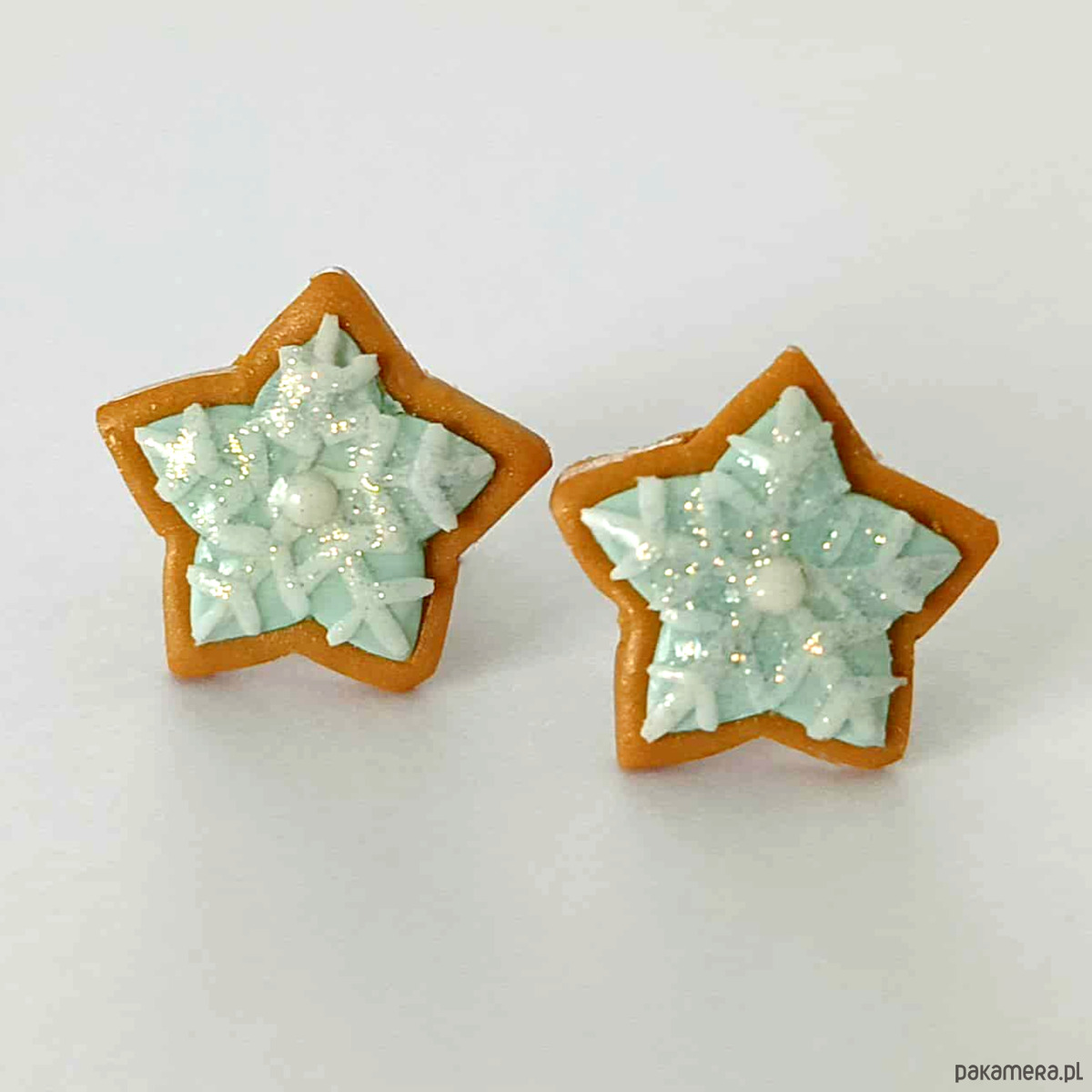 Te urocze kolczyki w kształcie gwiazdkowych ciasteczek ozdobionych miętowym lukrem i błyszczącą śnieżynką dodadzą Twojej stylizacji odrobiny świątecznego uroku.