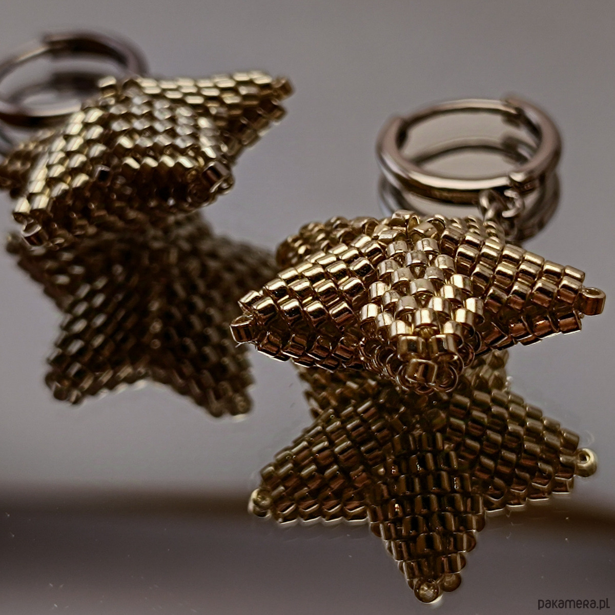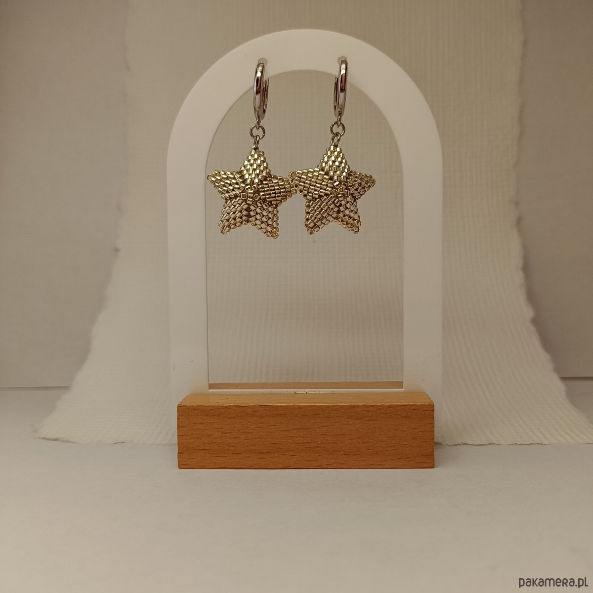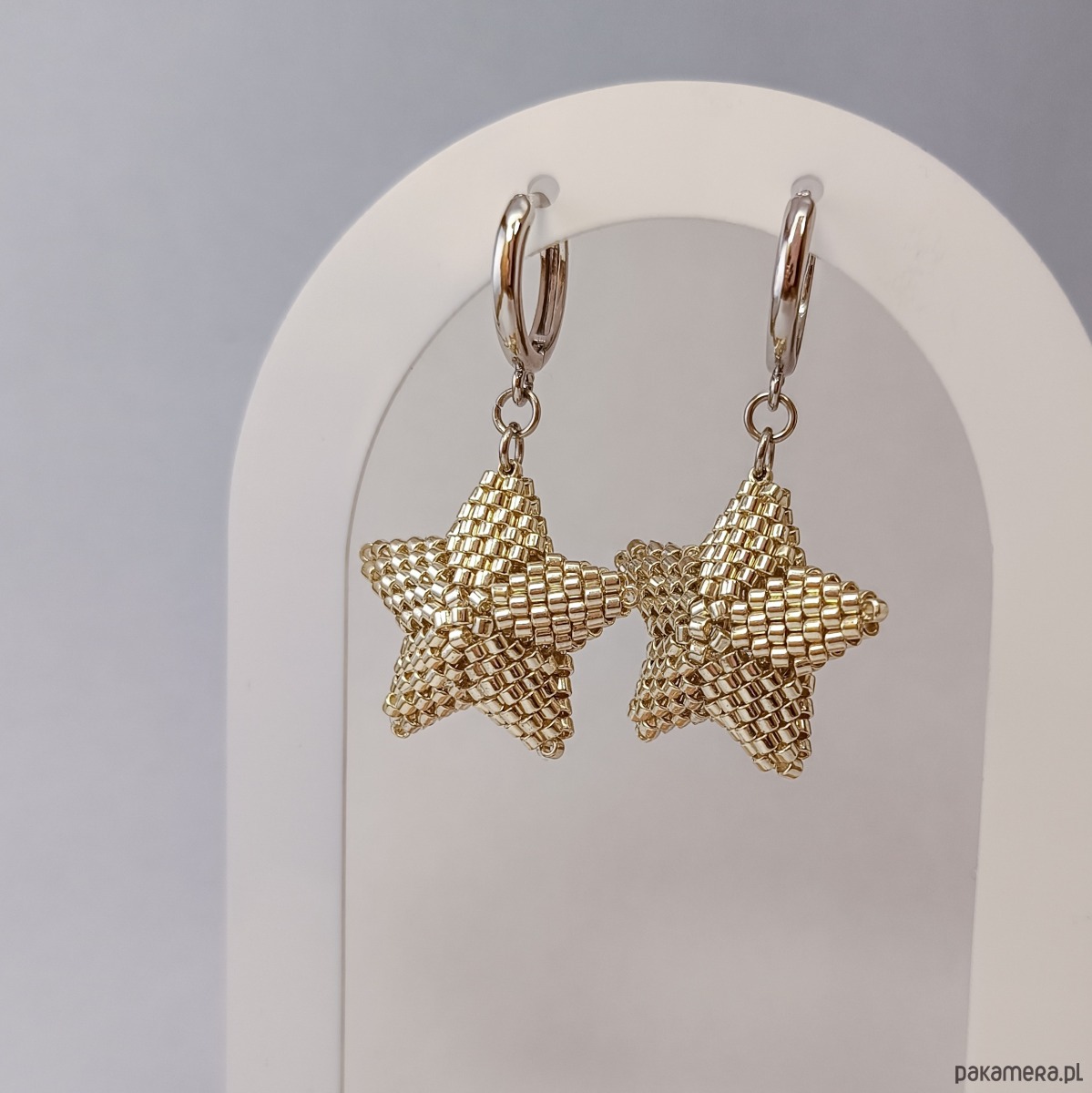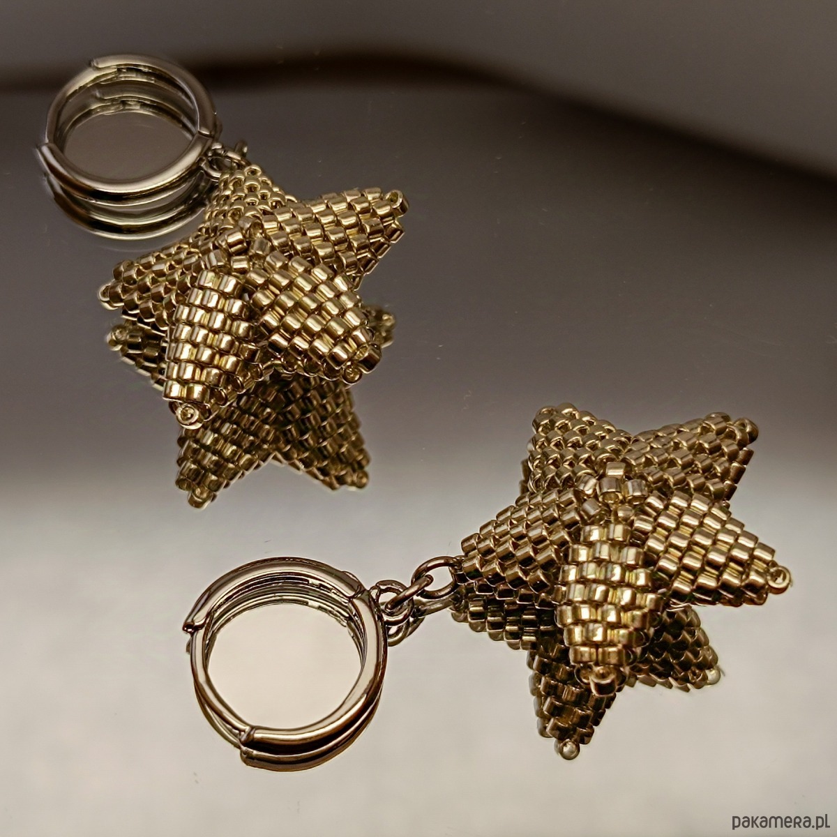 Rozświetl swoje stylizacje tymi zachwycającymi kolczykami w kształcie gwiazd, wykonanymi z najwyższej jakości japońskich koralików Miyuki pokrytych srebrem. Ręczna praca i perfekcyjna dbałość o detale sprawiają, że te kolczyki to prawdziwe dzieło sztuki. Ich trójwymiarowa forma pięknie odbija światło, dodając blasku każdej okazji.