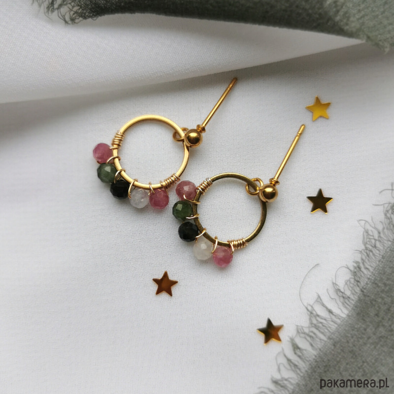 W modelu BELLA użyte kamienie to turmaliny w kolorze różu, bieli, zieleni i czerni.