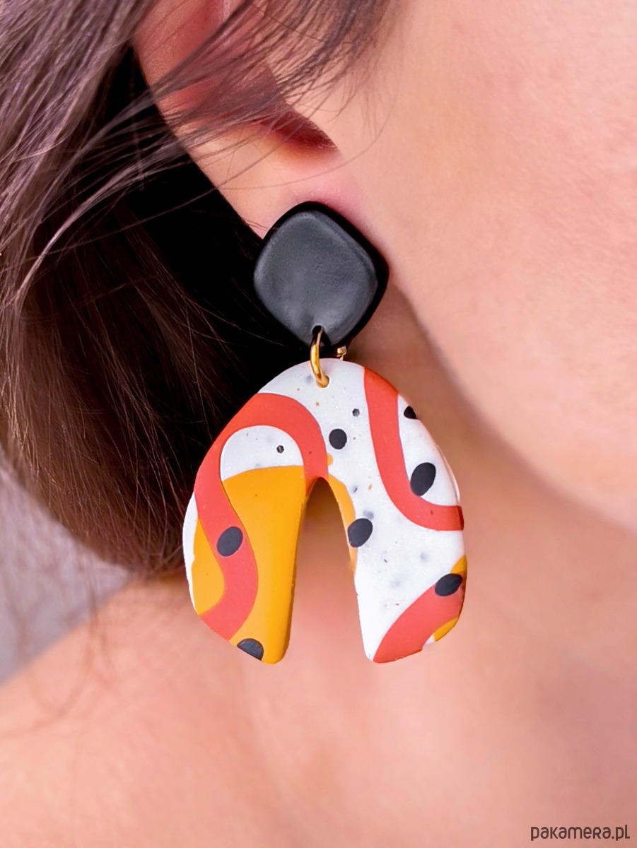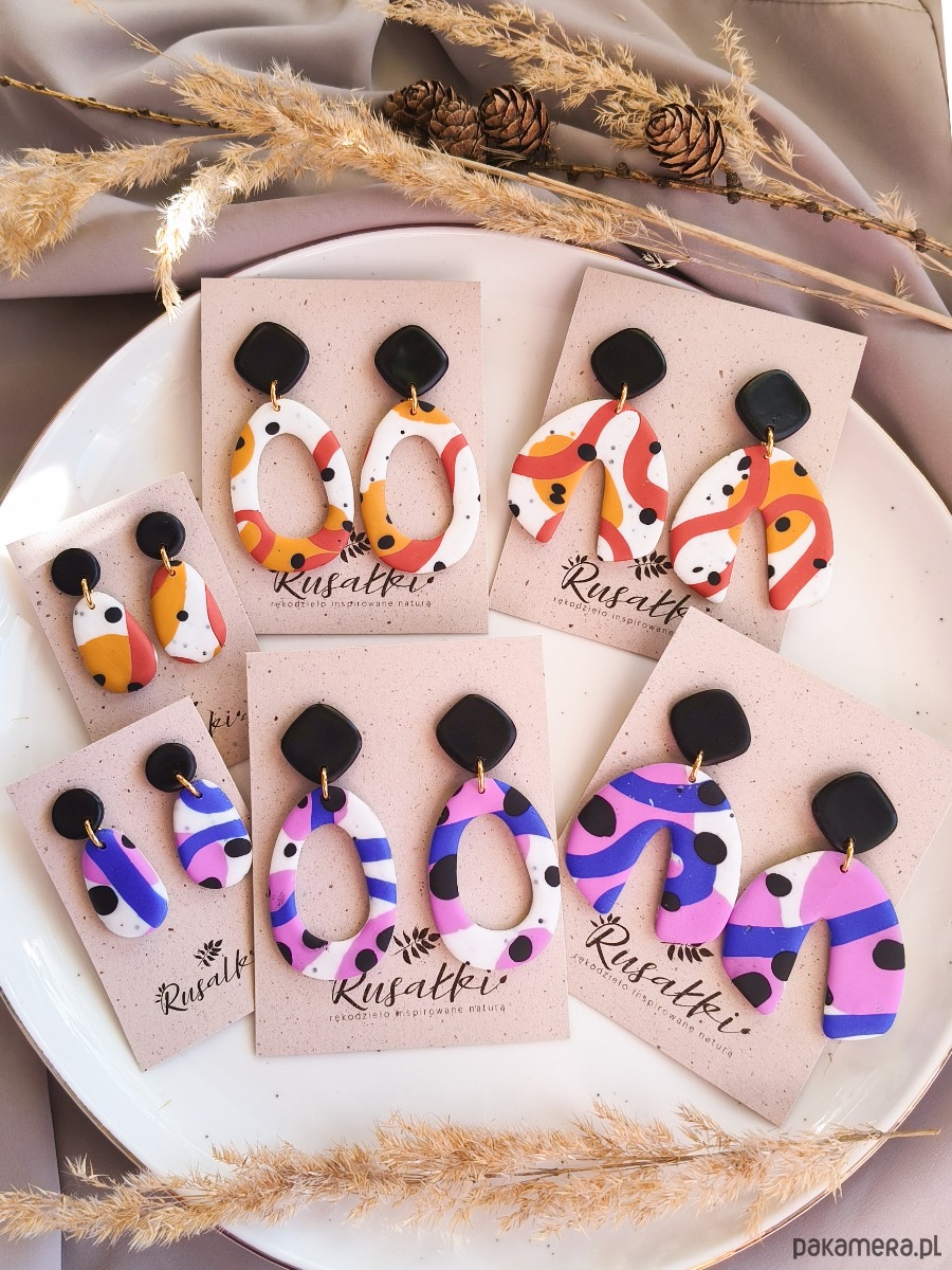 Artystyczne kolczyki z abstrakcyjnym wzorem to biżuteria inspirowana malarstwem i nowoczesnym designem. Połączenie fioletu i kobaltu z kontrastowymi białymi oraz czarnymi ciapkami nadaje im wyrazisty, a jednocześnie elegancki charakter. To wyjątkowy dodatek dla osób, które lubią kolorową biżuterię z artystyczną duszą i chcą podkreślić swój indywidualny styl. Kolczyki wykonane są z leciutkiej gliny polimerowej, a metalowe elementy są wykonane ze stali chirurgicznej. Stal chirurgiczna jest tworzywem, które mogą nosić nawet alergicy i który nie zmienia koloru pod wpływem wody.