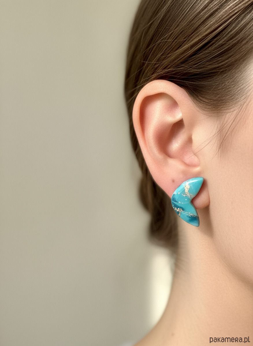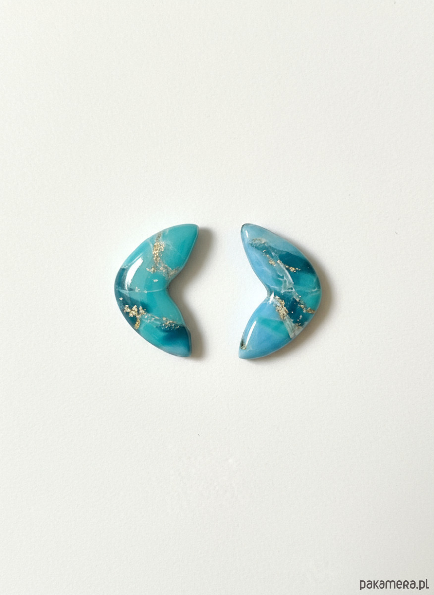 Minimalistyczne kolczyki w unikatowym kształcie przypominającym skrzydło lub półksiężyc. Delikatny kolor z zatopionymi złotymi drobinkami przywodzi na myśl naturalny kamień. Ręcznie wykonane z wysokiej jakości gliny polimerowej – lekkie, wygodne, przyciągające wzrok, a zarazem subtelne.