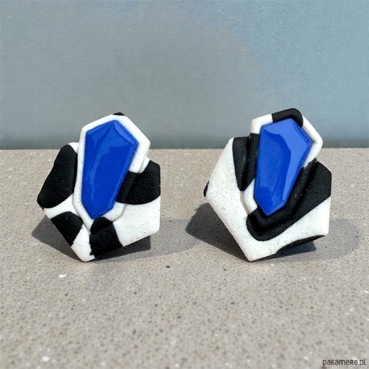 Oryginalne kolczyki wykonane ręcznie z dbałością o szczegóły z profesjonalnej glinki polimerowej, wypalane w piecu i szlifowane w domowej pracowni. Każda para kolczyków jest niepowtarzalna i wyjątkowa. Kolczyki są bardzo lekkie i wygodne, nie obciążają płatka ucha i przyciągają spojrzenia. Zapinane na sztyft ze stali chirurgicznej.