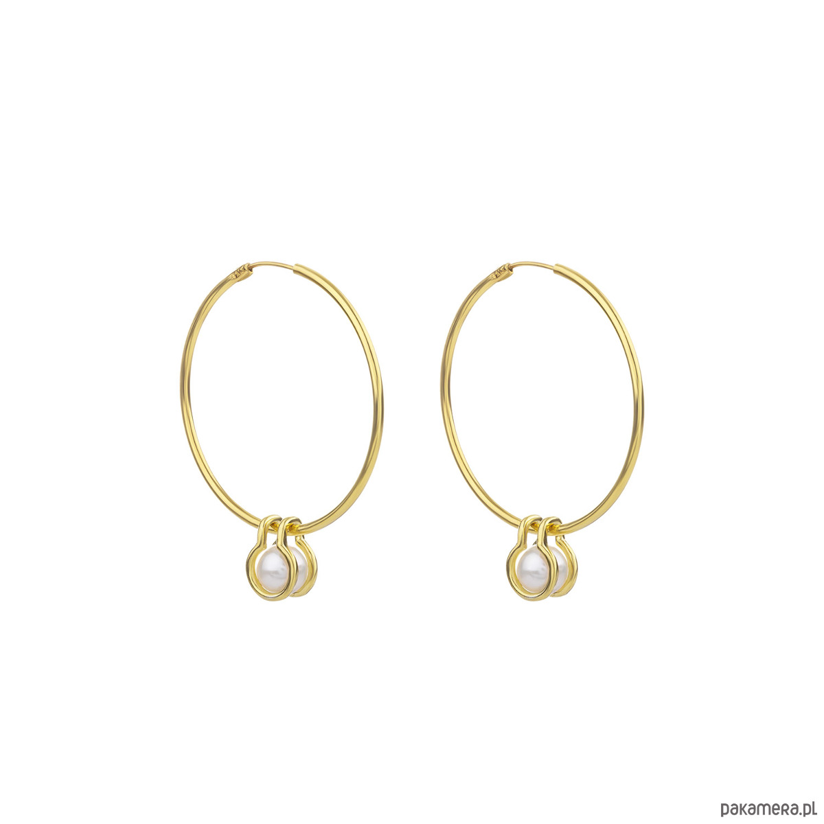 Niezwykle eleganckie złocone kolczyki koła ozdobione pięknymi perłami słodkowodnymi.