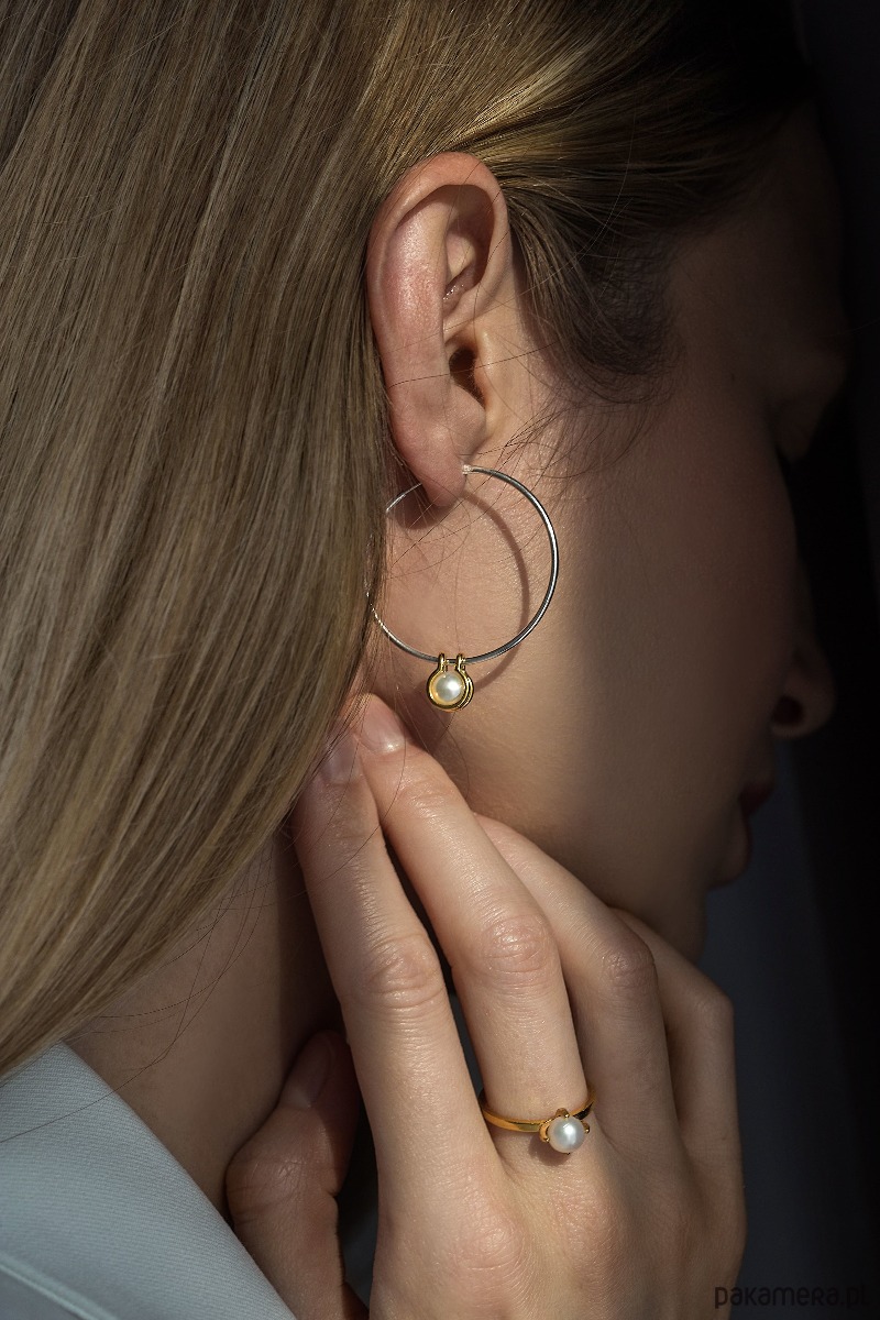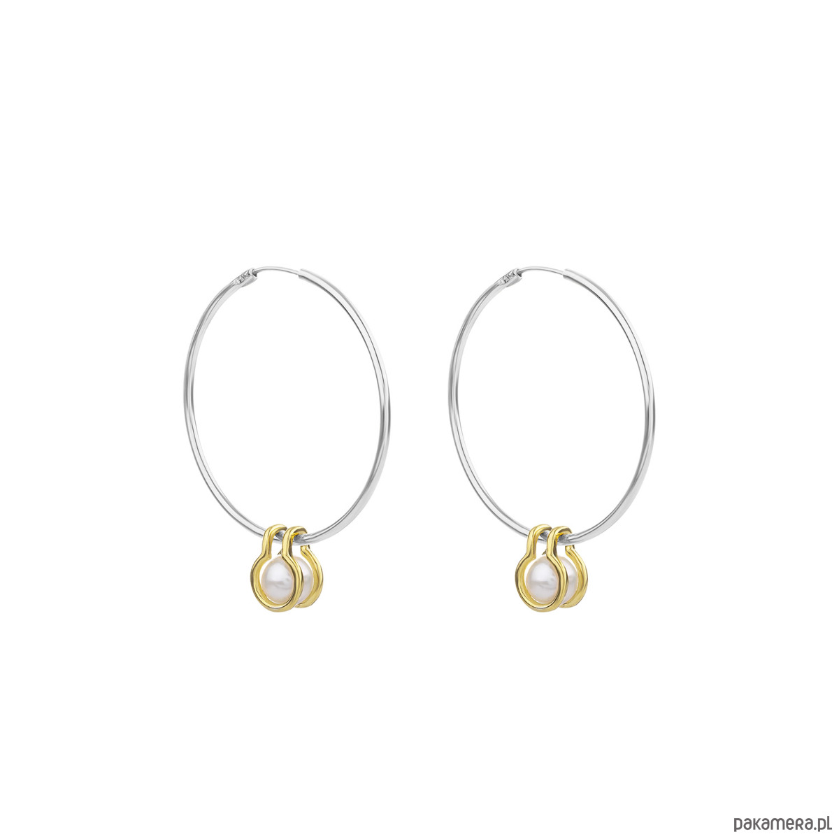 Niezwykle eleganckie srebrno/złocone kolczyki koła ozdobione pięknymi perłami słodkowodnymi.