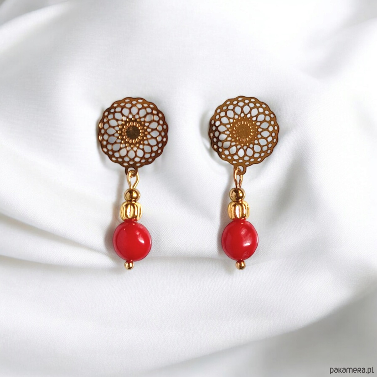 Kolczyki : INDIA : koral czerwony na ozdobnych sztyftach