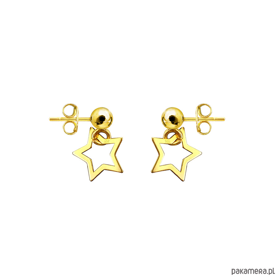 Kolczyki wykonane ze srebra próby 925 pozłacanego 14-karatowym złotem. Kolczyki w kształcie gwiazdek zawieszone są na sztyftach z kuleczkami.