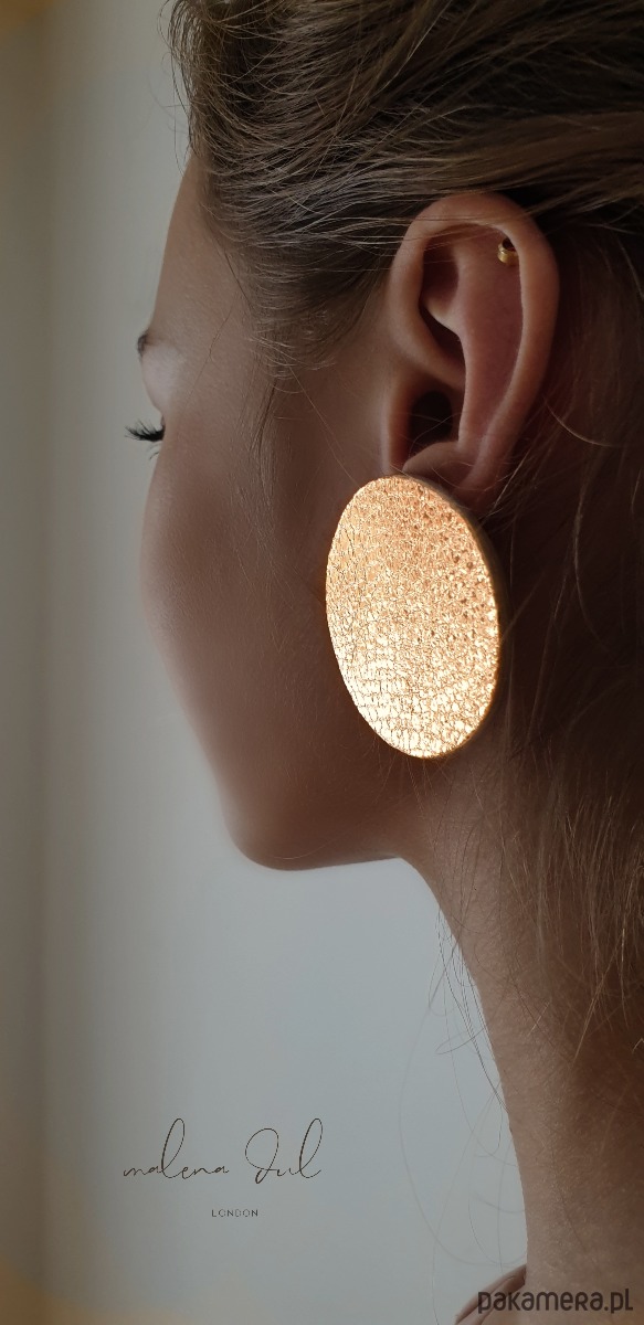 Kolekcja SUN, to duze, ogeometryczne kolczyki, wykonane ze skóry naturalnej w ksztalcie kola. Klasyczne i bardzo eleganckie. Swoją formą przywodzą w pamięci odważne lata 80te. Pięknie komponują się z prostymi w formie stylizacjami, eleganckimi. Sprawdzą się jako niebanalny dodatek to prostego t-shirtu i jeansow.
