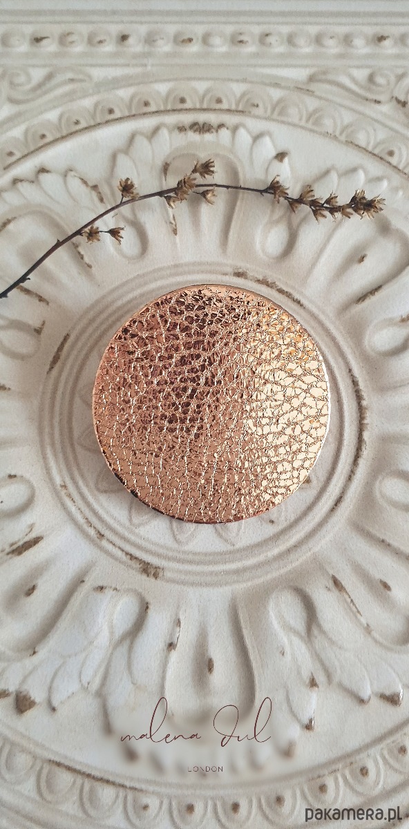 Wykonane z delikatnel, skóry w ciepłym, urokliwym odcieniu miedzi.
