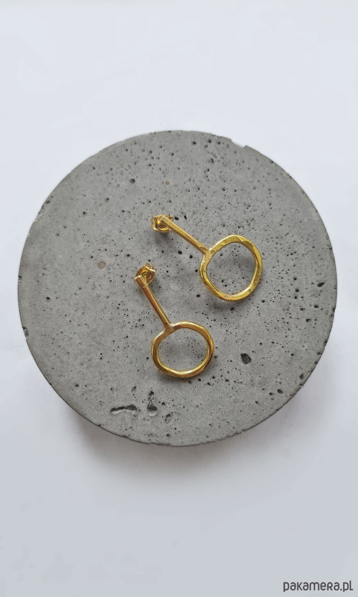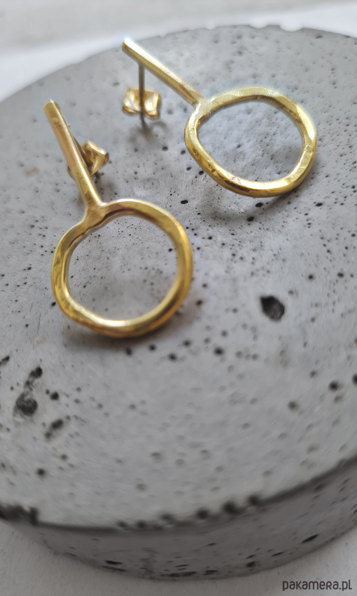 Kolczyki sztyfty wykonane ręcznie z mosiądzu, złocone = pokryte cienką warstwą złota,