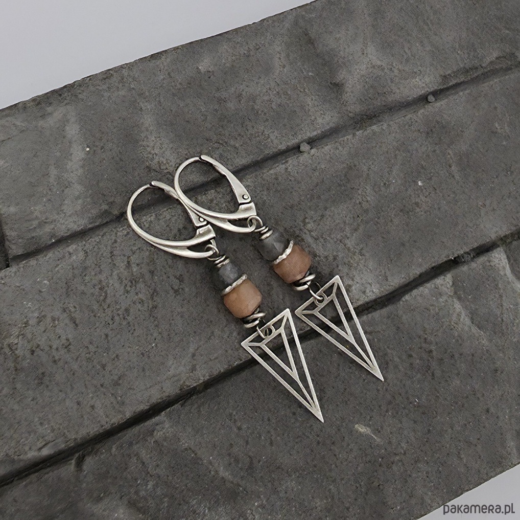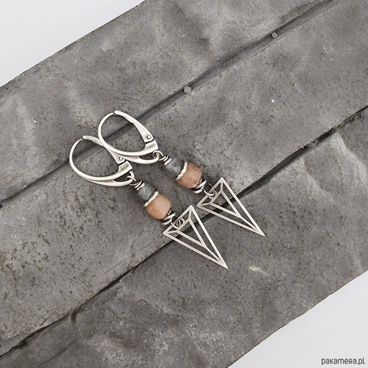 Nietuzinkowe i pelne uroku kolczyki na co dzień i nie tylko. Wykonane w całości z oksydowanego srebra próby 925 oraz fasetowanych kostek kamienia słonecznego i labradorytu wielkości 5 i 4 mm. Całkowita długość kolczyków to 5,5 cm. Ozdobnie zapakowane.