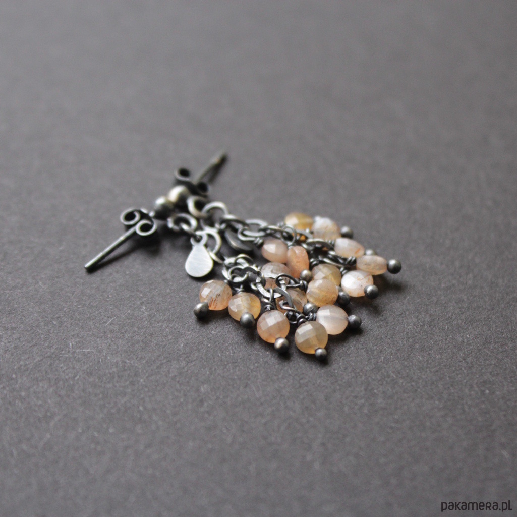 Kolczyki wykonane zostały z oksydowanego srebra próby 925 oraz fasetowanych kamienie słonecznych wielkości 0,4 cm.