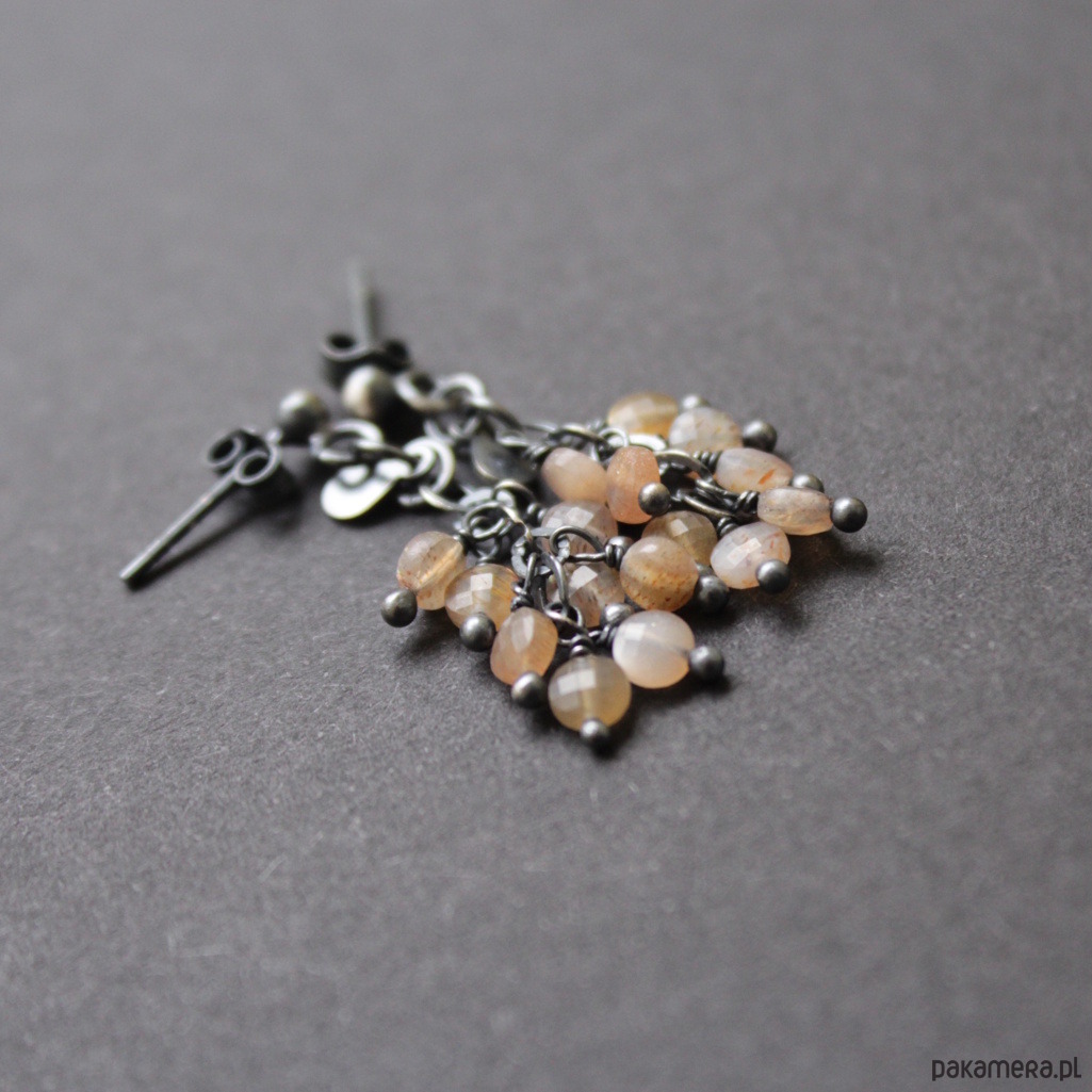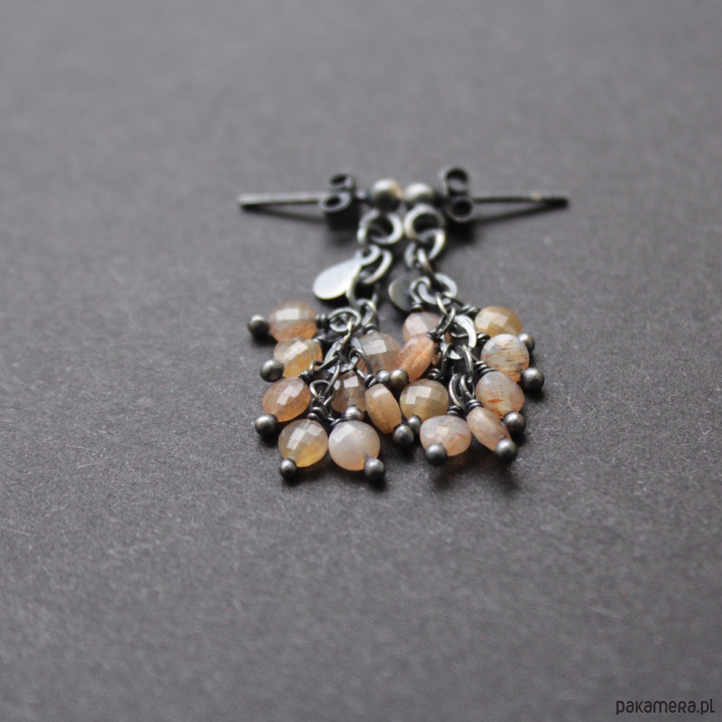 Kolczyki wykonane zostały z oksydowanego srebra próby 925 oraz fasetowanych kamienie słonecznych wielkości 0,4 cm.