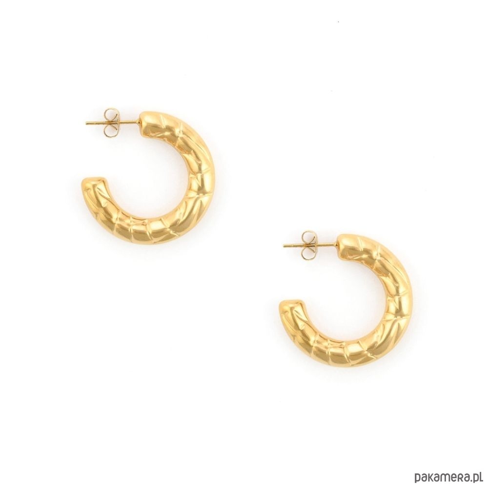 Wykonane ze stali szlachetnej pozłacanej, zachwycają trwałością i ciepłym odcieniem złota. Zapięcie na sztyft gwarantuje wygodę i stabilność, dzięki czemu kolczyki pozostają na swoim miejscu przez cały dzień. Ich klasyczna forma sprawia, że idealnie komponują się z każdą stylizacją – od codziennych po wieczorowe.