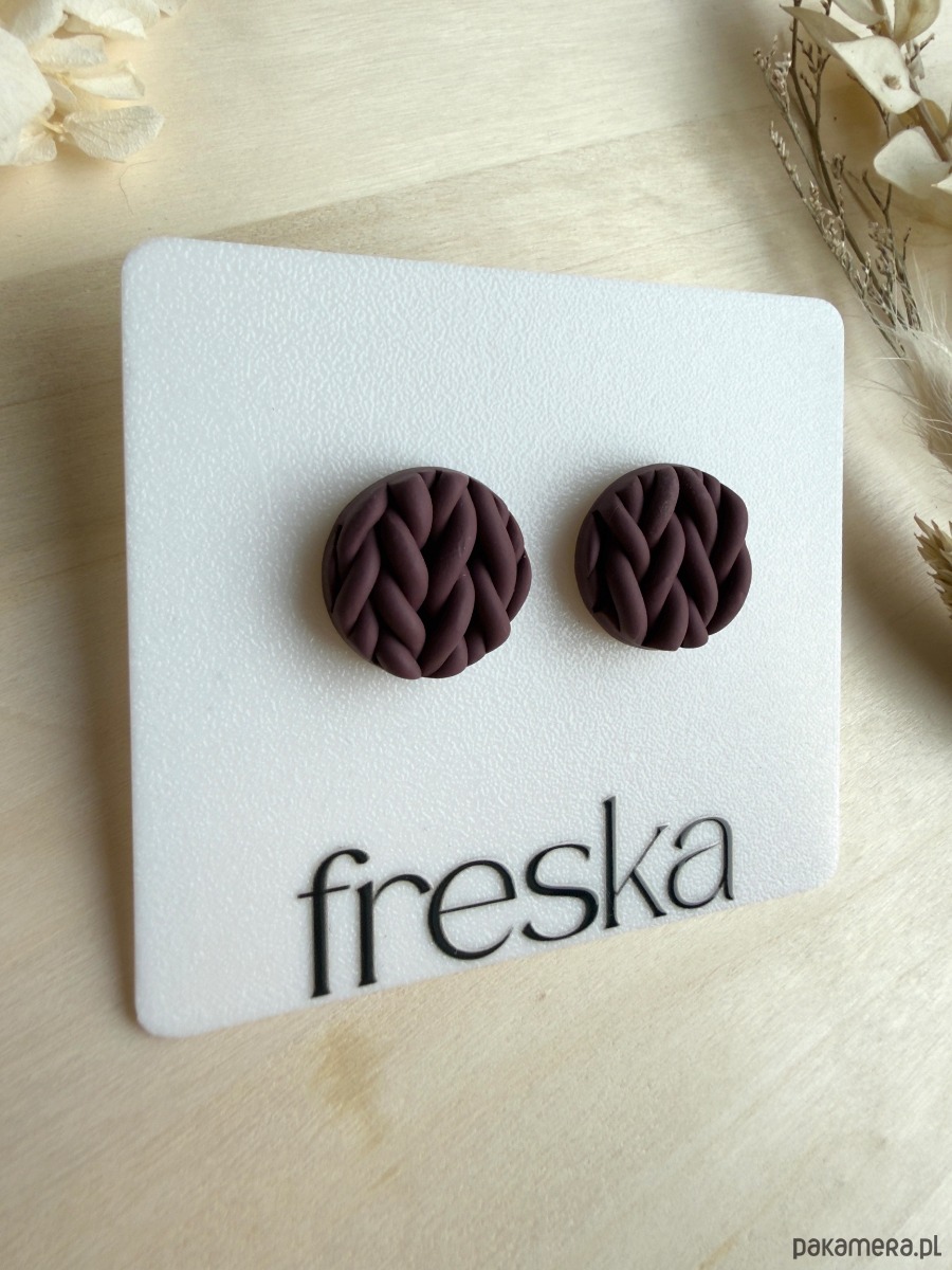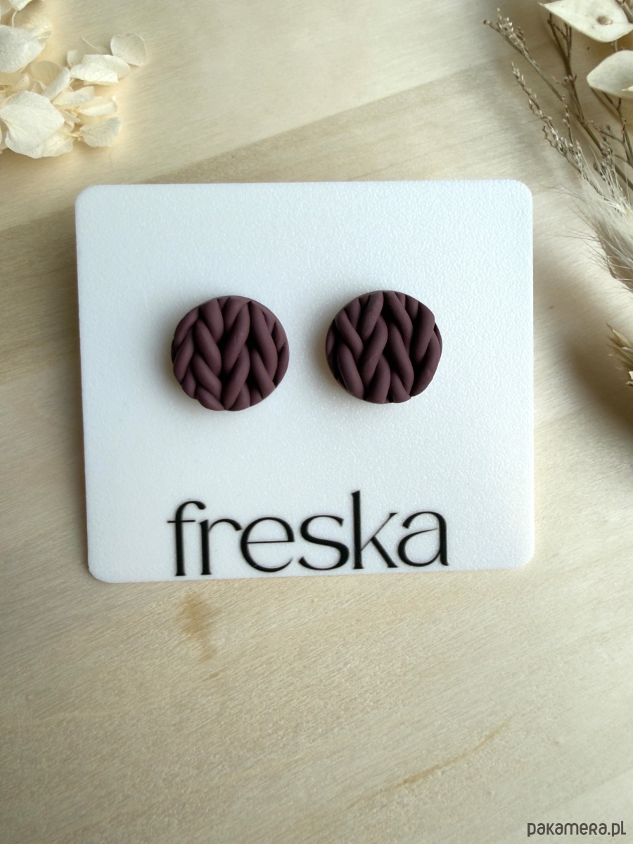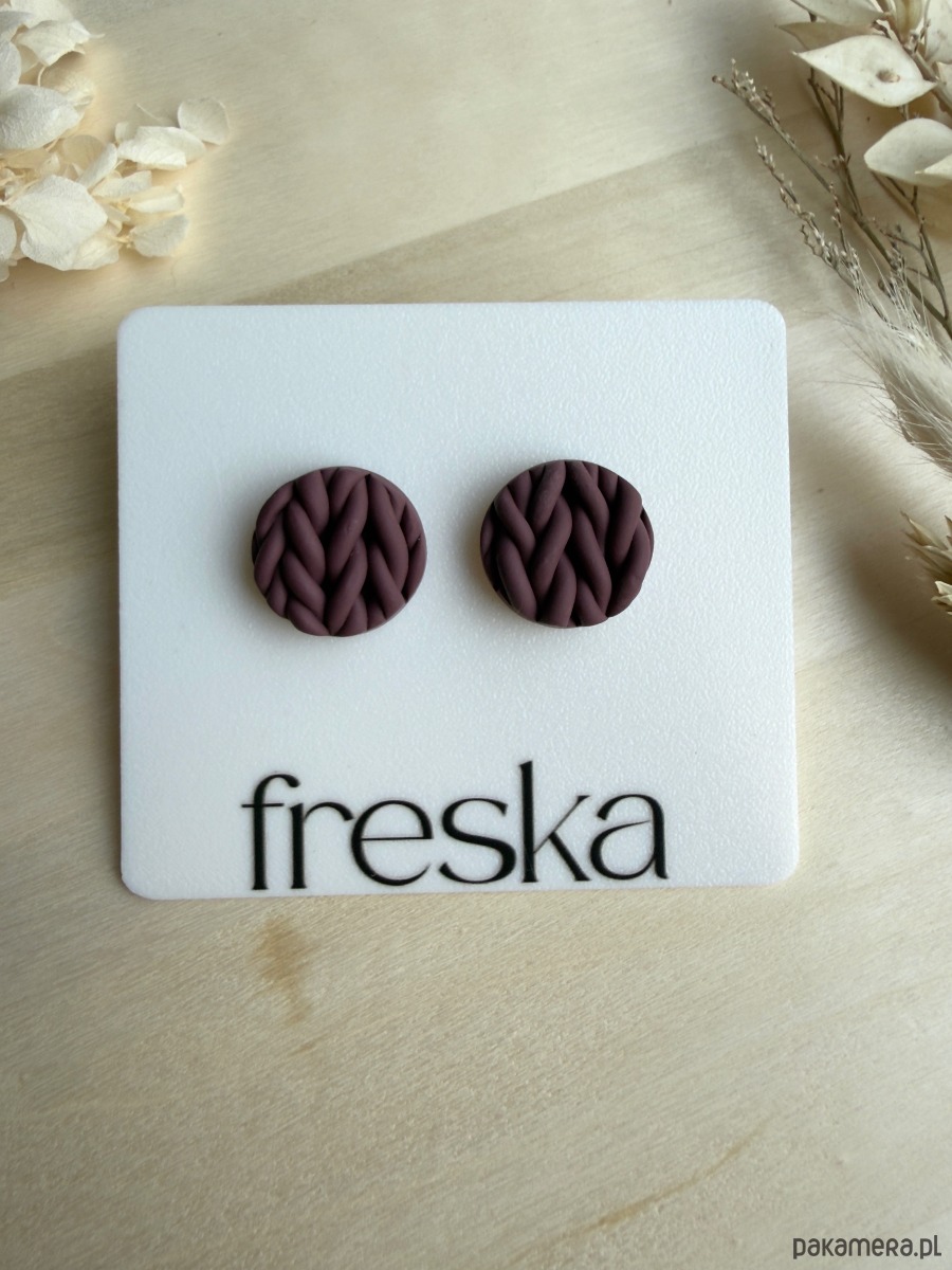 Wprowadź się w przytulny, zimowy nastrój z minimalistycznymi kolczykami inspirowanymi fakturą grubego, dzierganego swetra. Delikatnie pleciona struktura nadaje im miękki, trójwymiarowy charakter, a przygaszony ciemny fiolet pięknie komponuje się zarówno z codziennymi, jak i świątecznymi stylizacjami. Kolczyki zostały wykonane z wysokiej jakości gliny polimerowej, a ich sztyfty i baranki są ze stali chirurgicznej, dzięki czemu są lekkie, trwałe i komfortowe w całodziennym noszeniu.