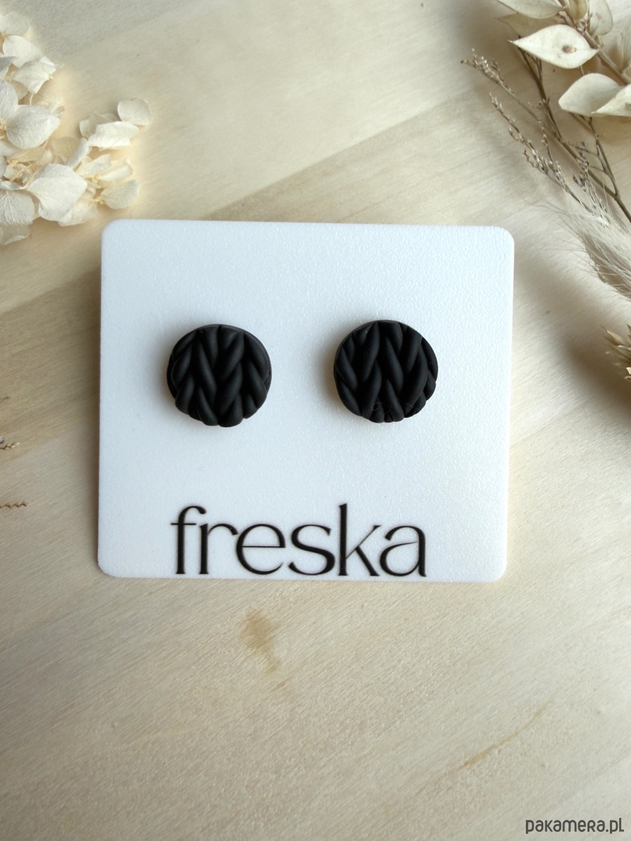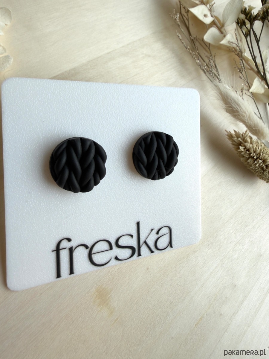 Wprowadź się w przytulny, zimowy nastrój z minimalistycznymi kolczykami inspirowanymi fakturą grubego, dzierganego swetra. Delikatnie pleciona struktura nadaje im miękki, trójwymiarowy charakter, a głęboka czerń pięknie komponuje się zarówno z codziennymi, jak i świątecznymi stylizacjami. Kolczyki zostały wykonane z wysokiej jakości gliny polimerowej, a ich sztyfty i baranki są ze stali chirurgicznej, dzięki czemu są lekkie, trwałe i komfortowe w całodziennym noszeniu.