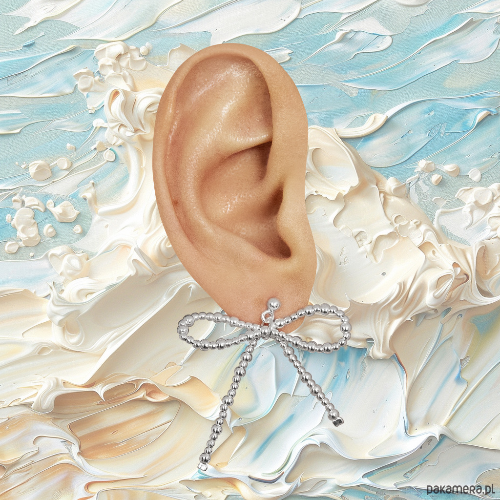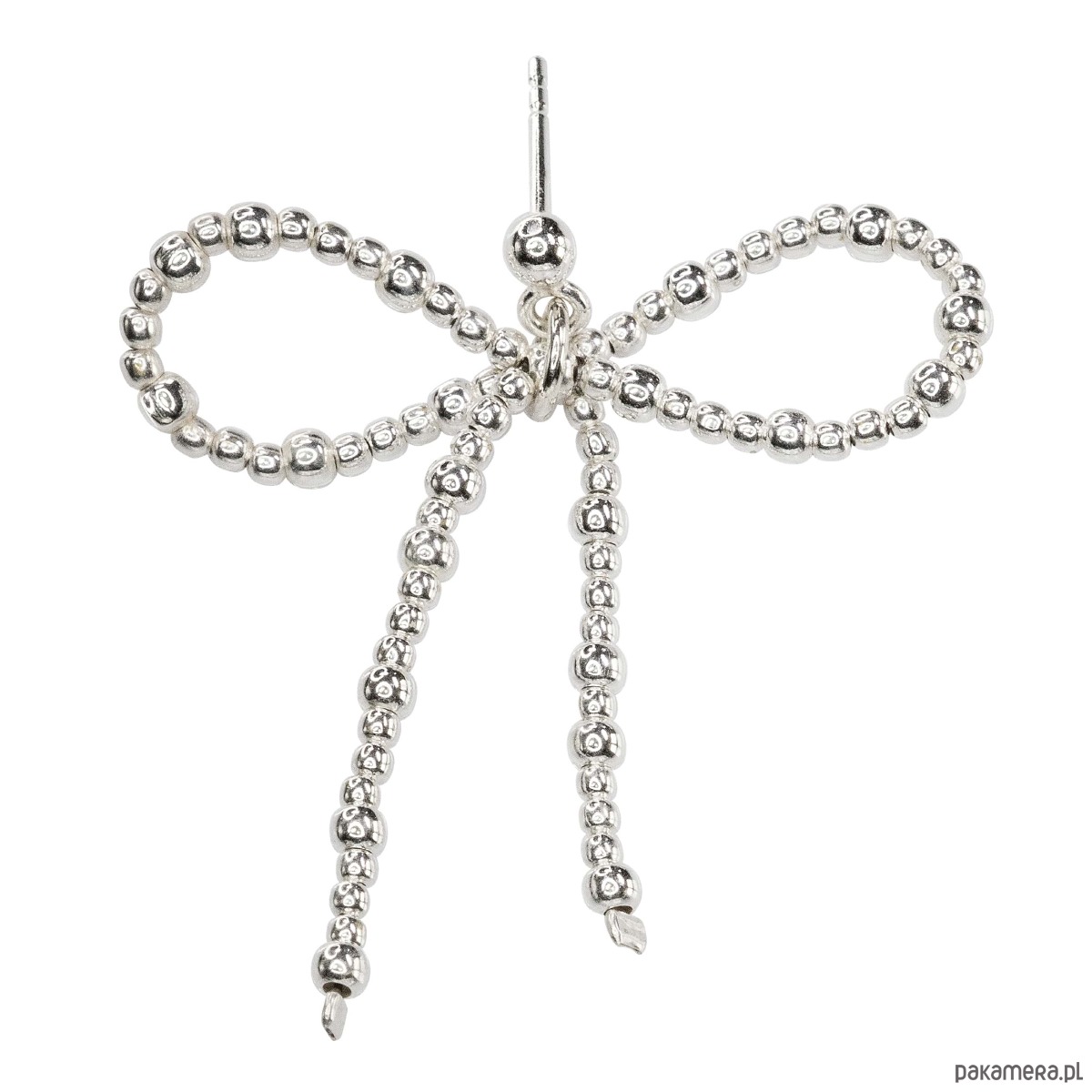 Kolczyk, zapięcie i kokarda stworzona z kulek różnej wielkości srebro próby 925