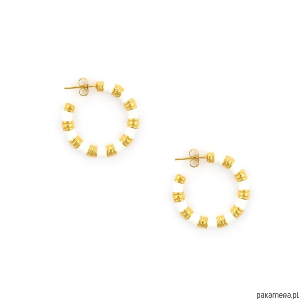 Kolczyki koła białe - sztyfty ze stali szlachetnej pozłacanej