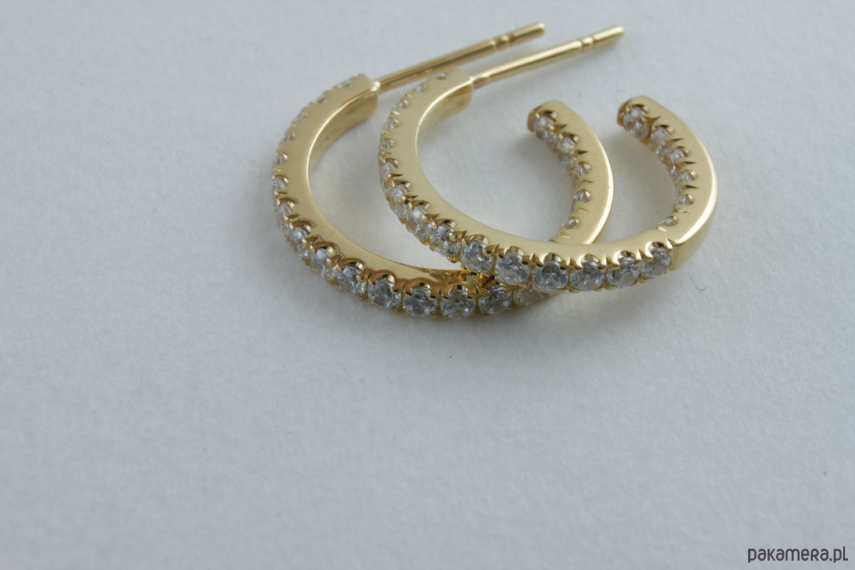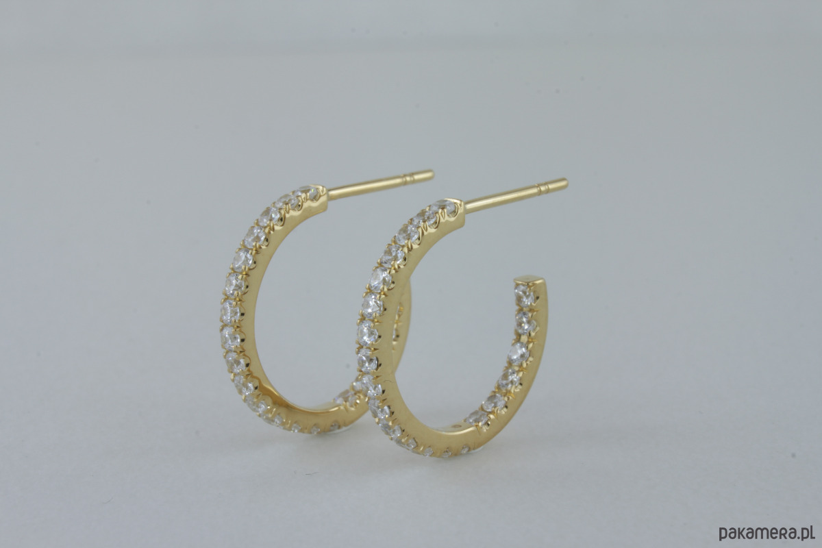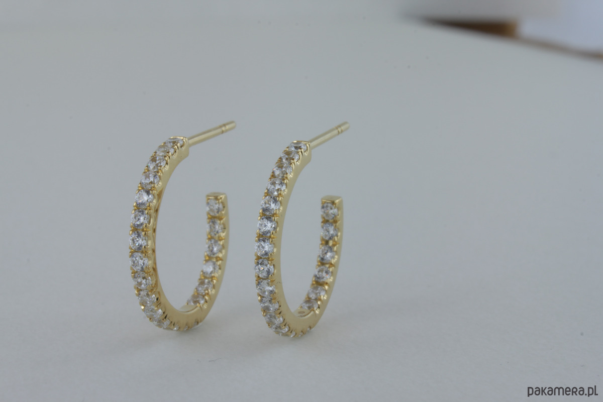 Precyzyjnie osadzone kamienie w oprawie castel na 2/3 obwodu kolczyków z wewnątrz a także 1/3 obwodu w środku. Zapięcie baranek.