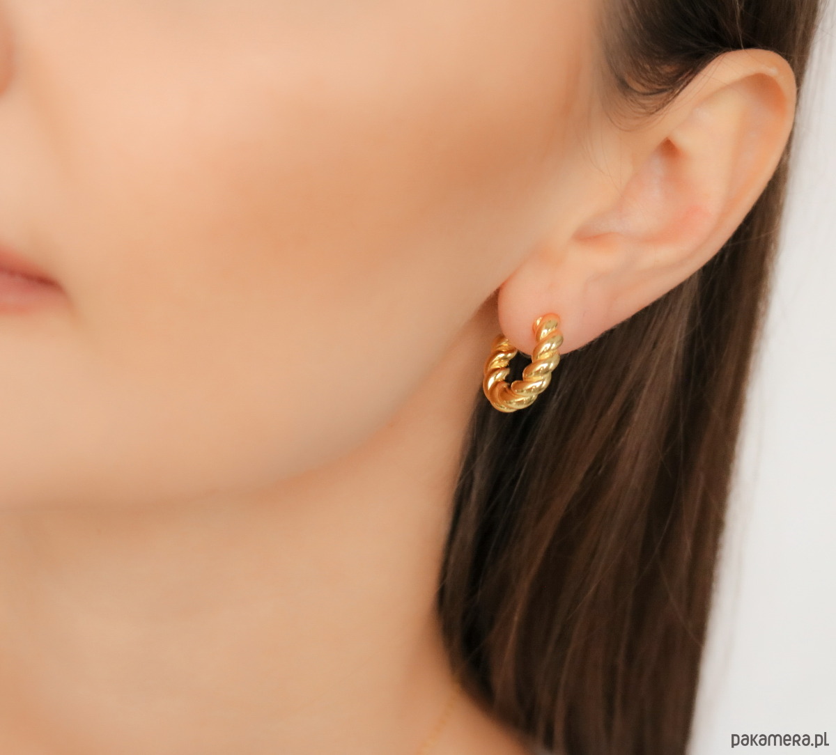 Kolczyki małe koła z cyrkoniami ze srebra 925 pozłacanego: