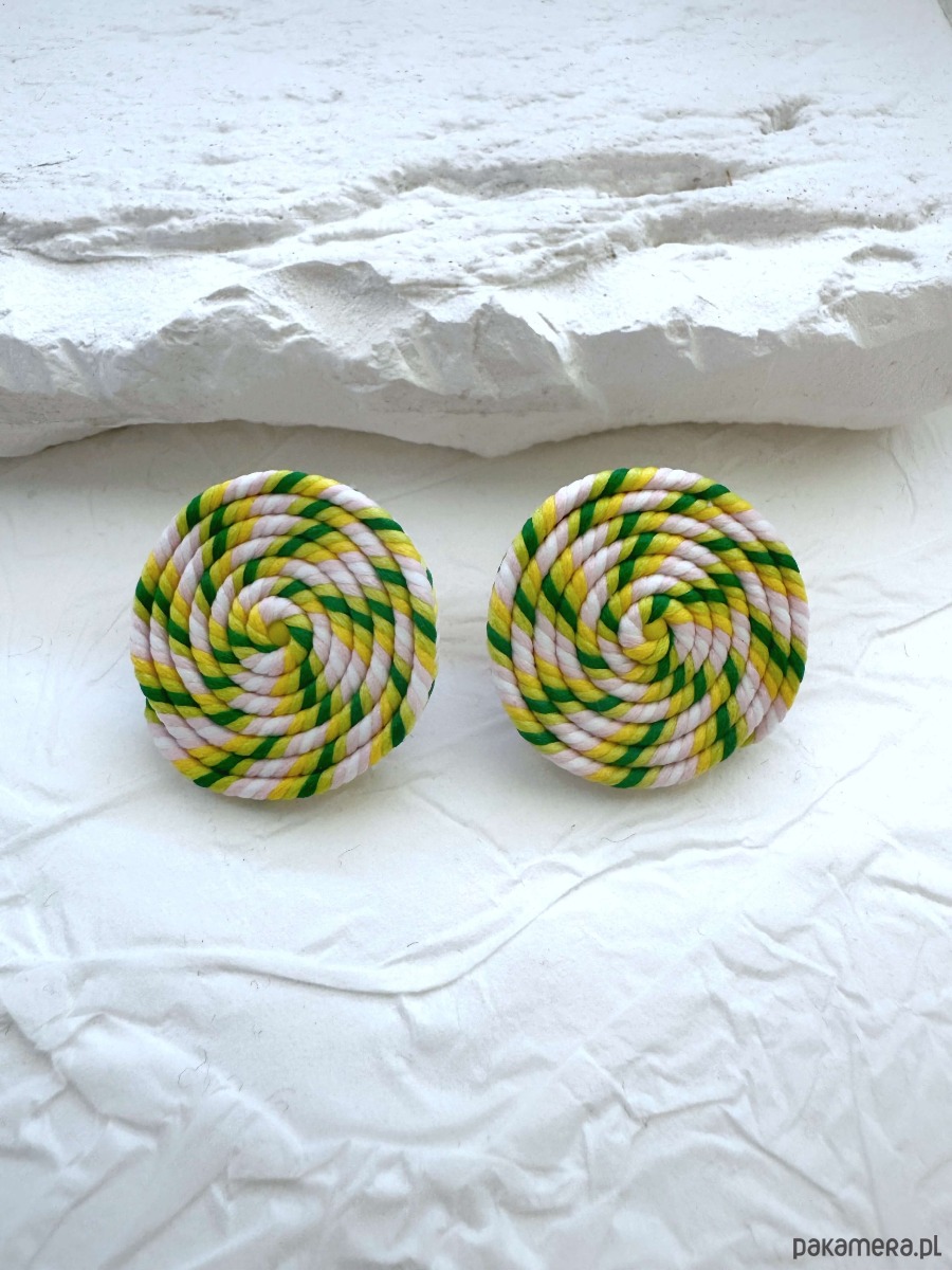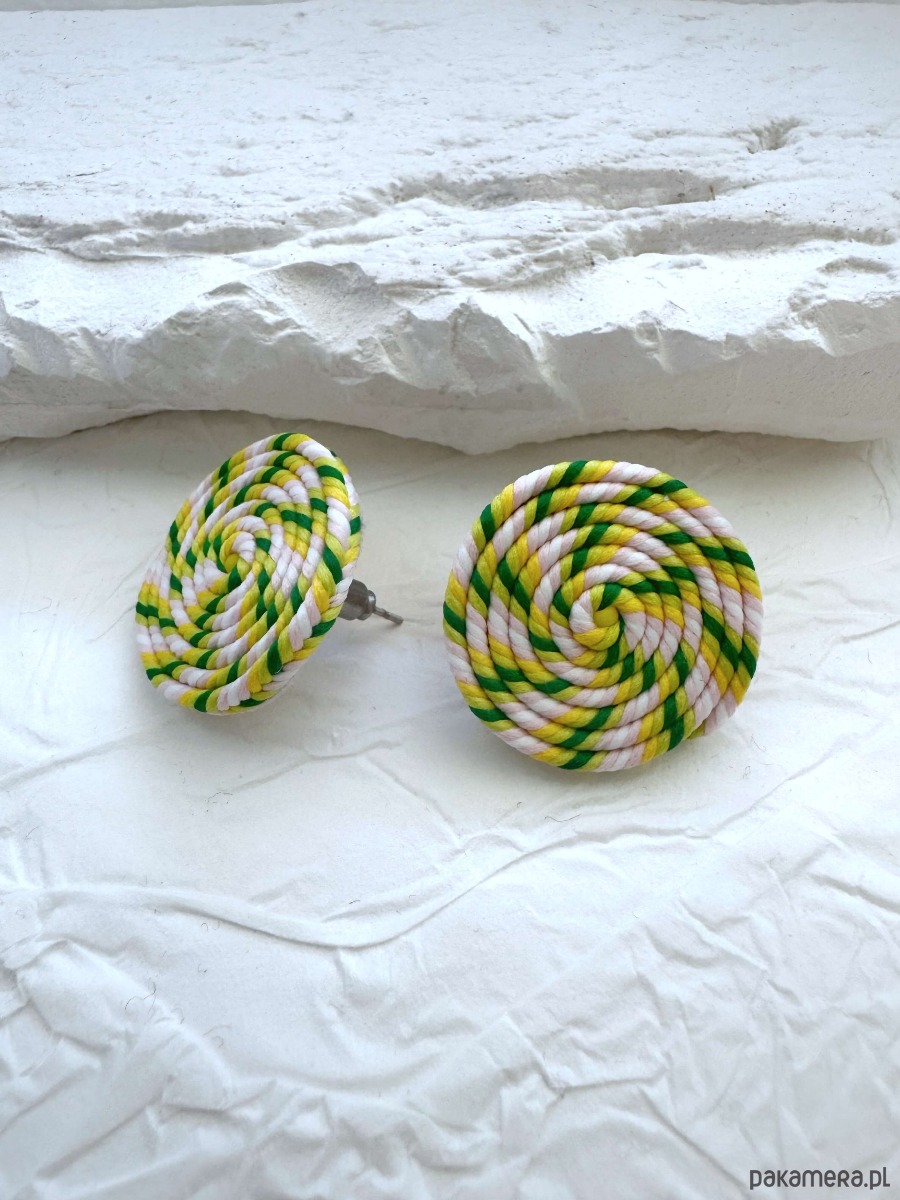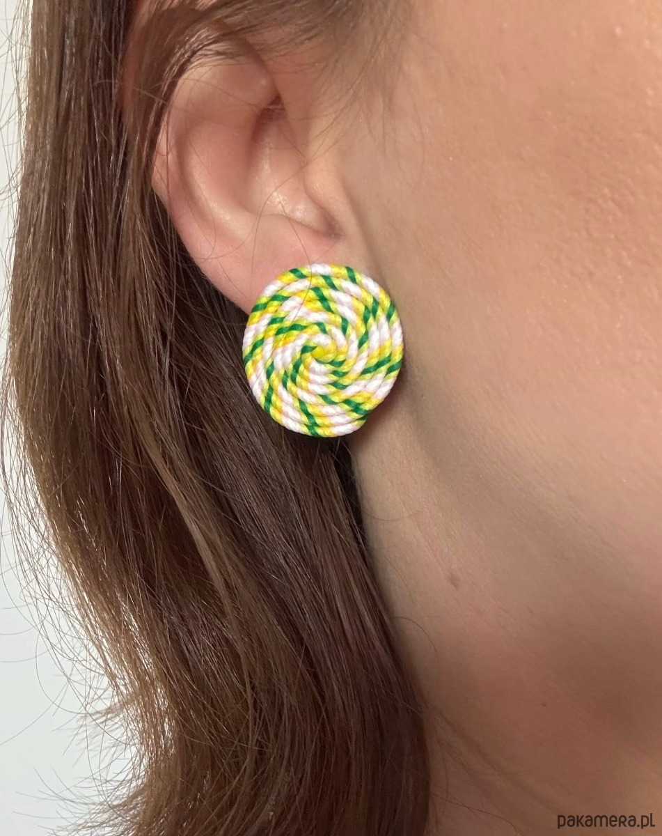 Okrągłe kolczyki ze sznurka w kontrastowych barwach to świetny sposób, by podkreślić swoją osobowość.
