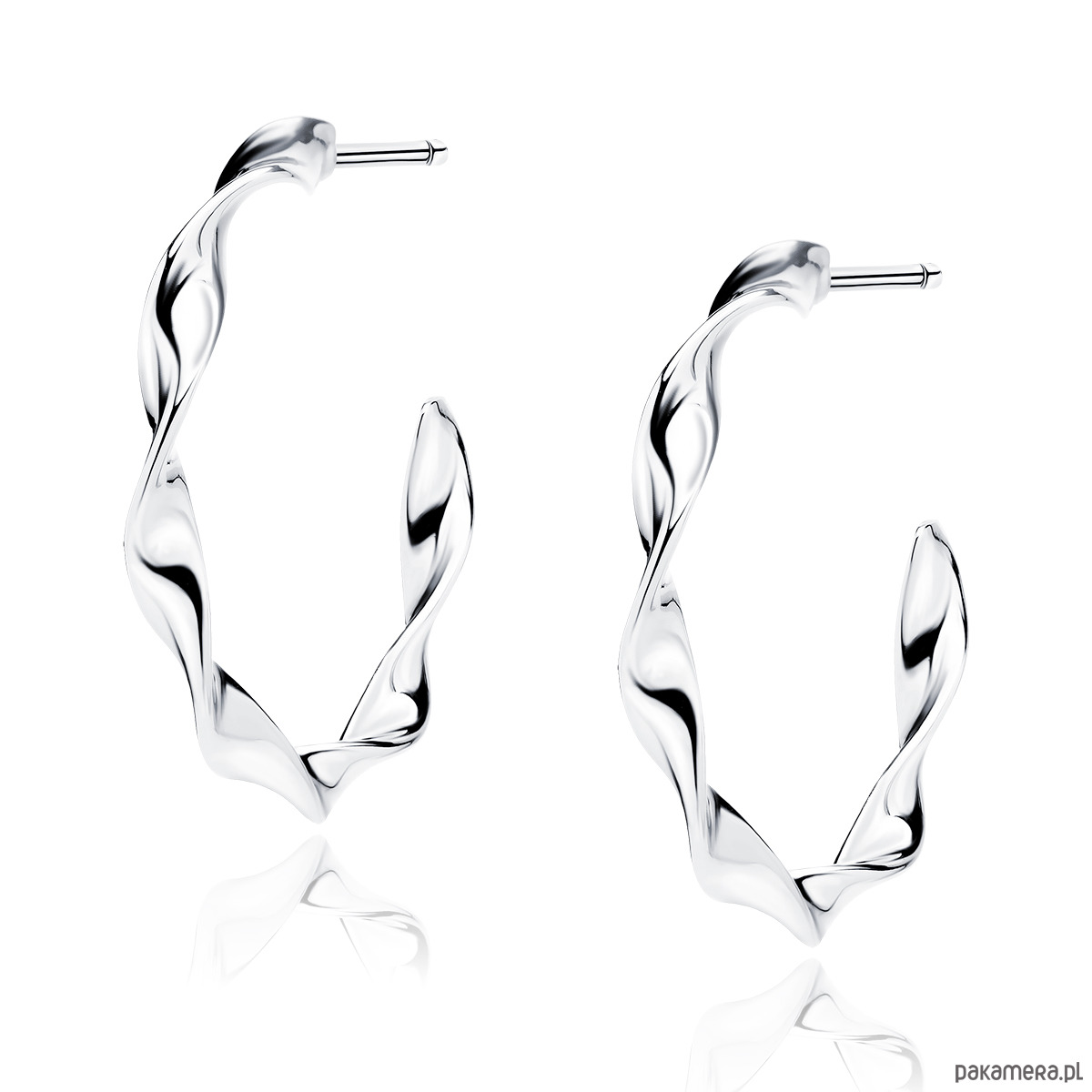 Kolczyki koła skręcane. Wykonane ze srebra pr. 925, a następnie rodowane.