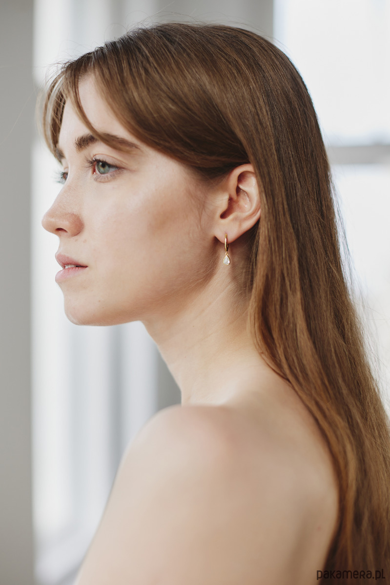 Kolczyki koła srebrne pozłacane z białą kropelką cyrkonia DROPLET WHITE
