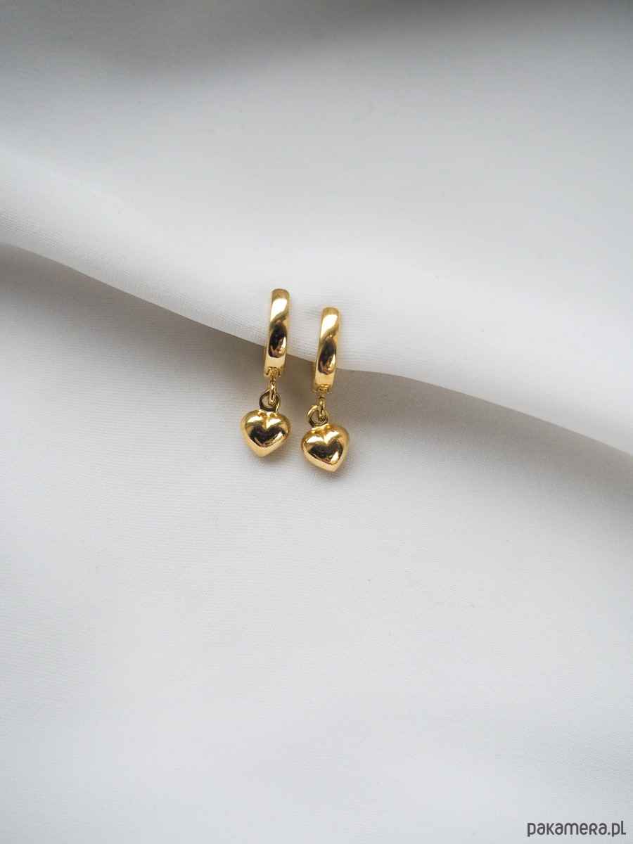 Kolczyki koła z minimalistycznym serduszkiem.