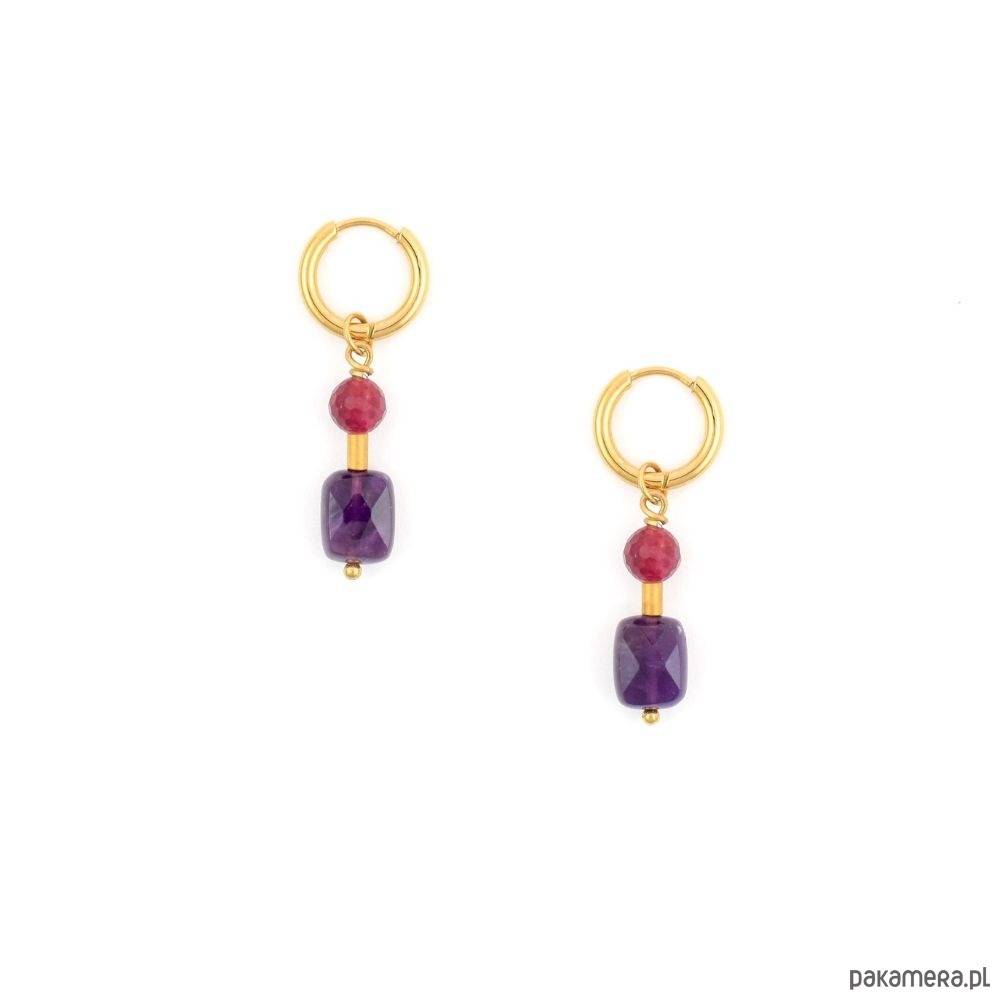 Kolczyki koła z Agatem i Ametystem Pozłacana stal szlachetna