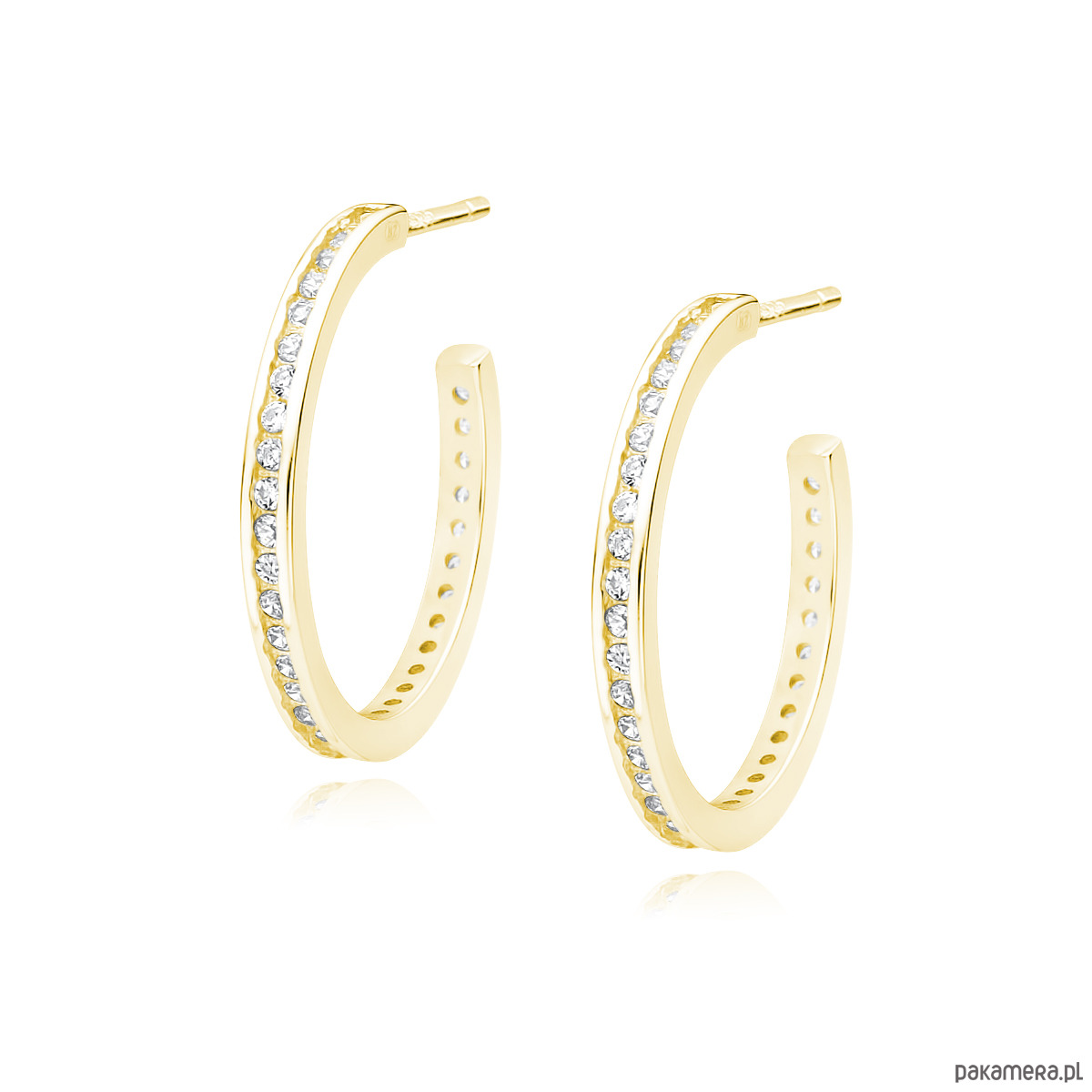 Kolczyki koła z cyrkoniami. Wykonane ze srebra pr. 925, a następnie pozłacane.