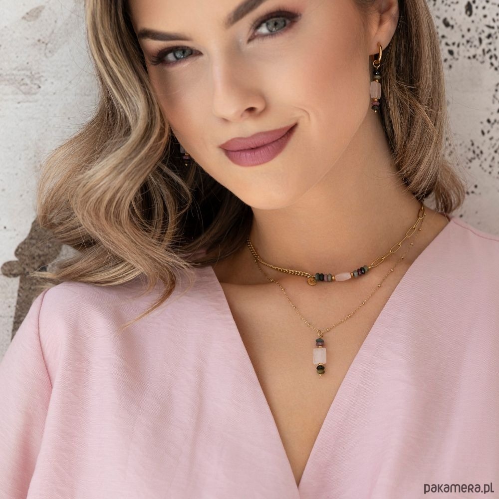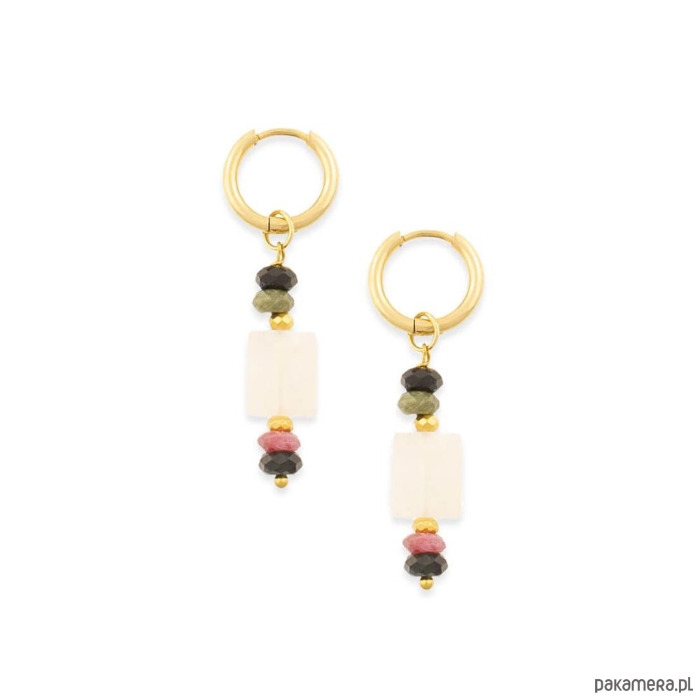 Kolczyki zostały zaprojektowane z myślą o kobietach, które cenią subtelne formy i naturalne materiały. Idealnie sprawdzą się jako prezent z okazji Dnia Mamy – wyrażając wdzięczność, bliskość i piękno relacji, które trwają mimo upływu czasu.Zaczenie kamienia:Kwarc różowy to kamień miłości. Odnosi się nie tylko do relacji z innymi ludźmi, ale również z samym sobą. Uwrażliwia na piękno oraz zwiększa zdolność empatii.Turmalin (kolorowy) to kamień harmonii. Wycisza i harmonizuje, doprowadzając do pełnej równowagi drzemiące w nas emocje.Hematyt to kamień wojowników. Silnie oczyszcza krew. Budzi radość do życia, dodaje odwagi i wiary we własne umiejętności.