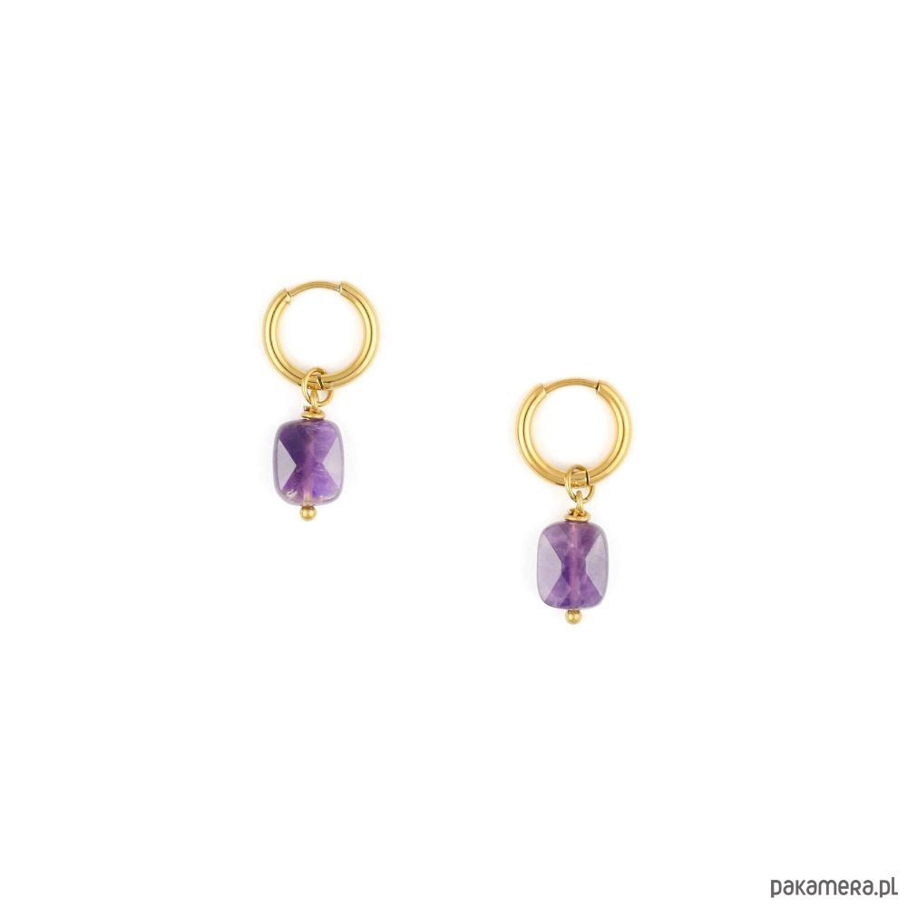 Kolczyki wykonane są z wysokiej jakości pozłacanej stali szlachetnej, która jest materiałem antyalergicznym. Pozłocenie nie zmienia koloru podczas użytkowania. Wymiary: Kamienie: AmetystWielkość kamieni: 10x7mmMateriał: antyalergiczna stal szlachetna