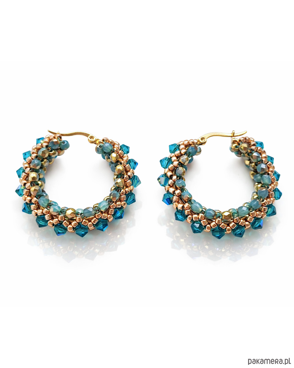 Kolczyki Koła z Kryształów Preciosa i Koralików - AURA Blue Zircon