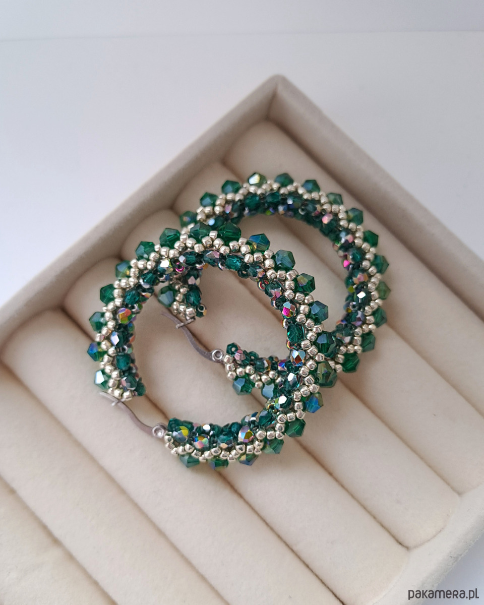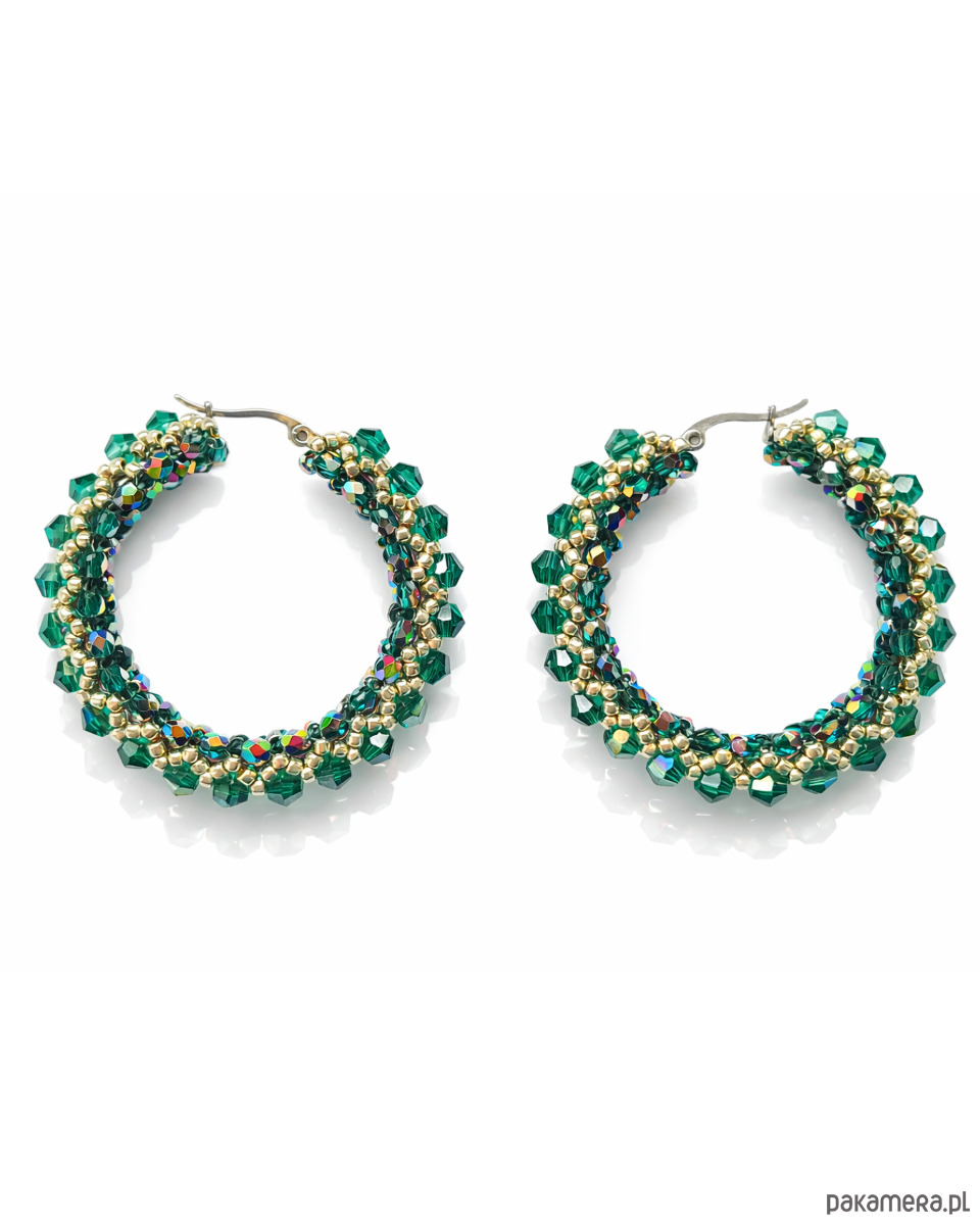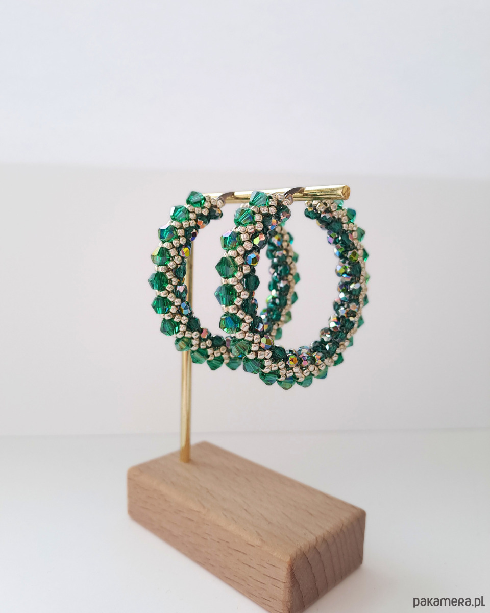 Kolczyki Koła z Kryształów Preciosa i Koralików - AURA Emerald